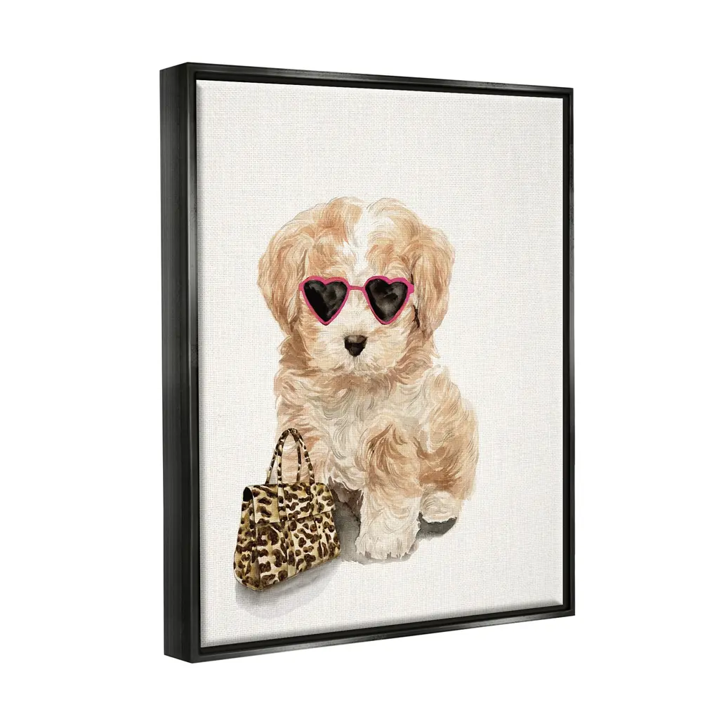 Elevate your home or office to the next level with Stupell Framed Floating Canvas Wall Art. Our premium hand-stretched canvas is mounted securely into a sturdy lightweight frame. The museum-style gap between the wrapped canvas and the box frame gives the illusion of floating artwork. Stupell Wall Art is made in the USA.Features: Dimensions: 17 x 1.7 x 21 Frame, 16 x 1.5 x 20 Canvas ArtFloating Frame Sizes Include Standard: 17 x 1.7 x 21 Oversized: 25 x 1.7 x 31Wall Art is Ready to Hang with Hardware Free Hanging. No installation required. For Easy Set Up Lean or Layer Artwork on Shelf or Against Wall.Our elevated 1.7" Thick Floating Frame is the perfect complement to our canvas style Wall Art. We use only the highest quality inks in house with industry leading printing solutions. Canvas is hand stretched over a durable wood foundation and then mounted securly into a Modern Box Frame. Made in the USA.Artwork Relates To: Handbag, Sunglasses, Purse, Animal, Canine, Mammal, Dog, Pet, Puppy, Glam, FashionDesign by Masey St. Studios