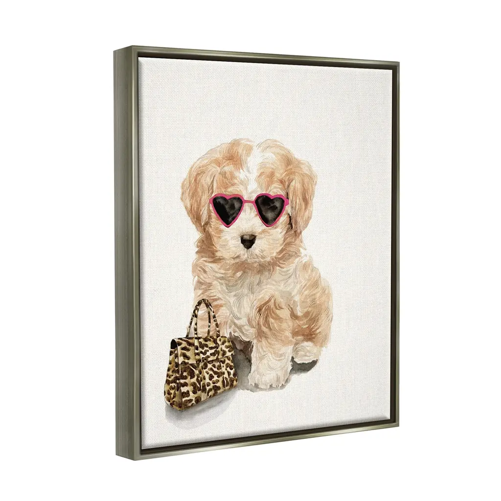 Elevate your home or office to the next level with Stupell Framed Floating Canvas Wall Art. Our premium hand-stretched canvas is mounted securely into a sturdy lightweight frame. The museum-style gap between the wrapped canvas and the box frame gives the illusion of floating artwork. Stupell Wall Art is made in the USA.Features: Dimensions: 17 x 1.7 x 21 Frame, 16 x 1.5 x 20 Canvas ArtFloating Frame Sizes Include Standard: 17 x 1.7 x 21 Oversized: 25 x 1.7 x 31Wall Art is Ready to Hang with Hardware Free Hanging. No installation required. For Easy Set Up Lean or Layer Artwork on Shelf or Against Wall.Our elevated 1.7" Thick Floating Frame is the perfect complement to our canvas style Wall Art. We use only the highest quality inks in house with industry leading printing solutions. Canvas is hand stretched over a durable wood foundation and then mounted securly into a Modern Box Frame. Made in the USA.Artwork Relates To: Handbag, Sunglasses, Purse, Animal, Canine, Mammal, Dog, Pet, Puppy, Glam, FashionDesign by Masey St. Studios