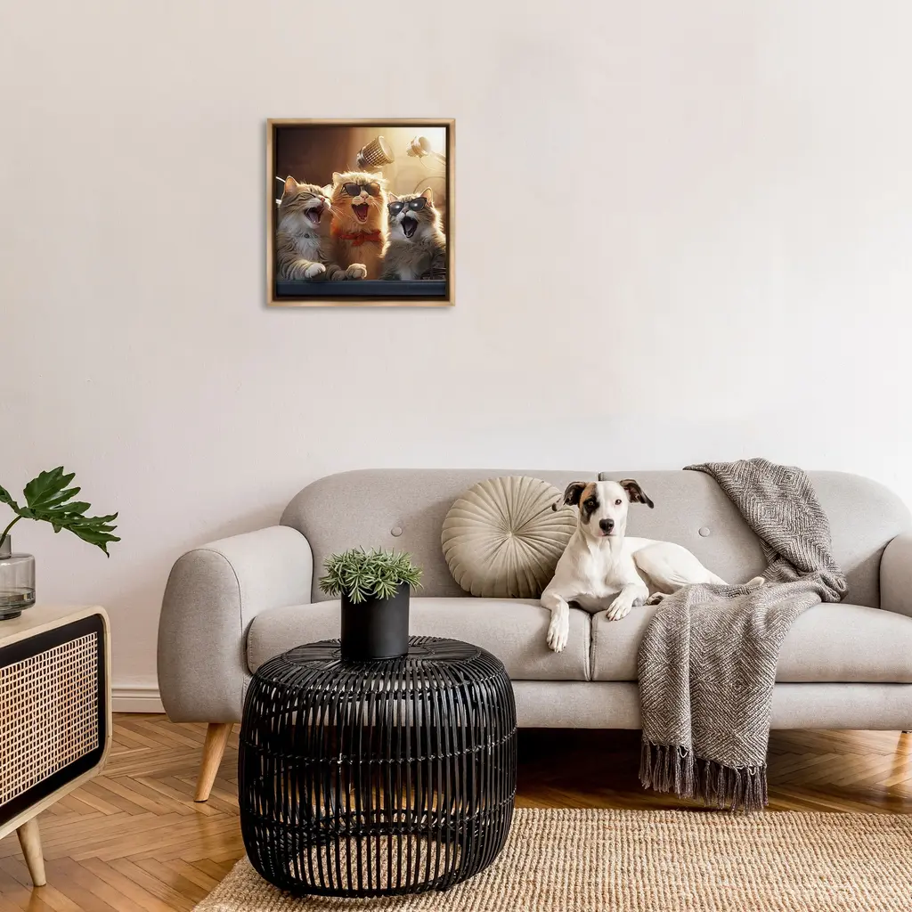 Elevate your home or office to the next level with Stupell Framed Floating Canvas Wall Art. Our premium hand-stretched canvas is mounted securely into a sturdy lightweight frame. The museum-style gap between the wrapped canvas and the box frame gives the illusion of floating artwork. Stupell Wall Art is made in the USA.Features: Dimensions: 18 x 1.7 x 18 Frame, 17 x 1.5 x 17 Canvas ArtFloating Frame Canvas Products are available in sizes 18"x18" and 25"x25". All Floating Frame Canvas Products have a 1.7" Depth.Wall Art is Ready to Hang with Hardware Free Hanging. No Installation required. For Easy Set Up Lean or Layer Artwork on Shelf or Against Wall. Artwork is Permently Fixed into the Frame.Our elevated 1.7" Thick Floating Frame is the perfect complement to our canvas style Wall Art. We use only the highest quality inks in house with industry leading printing solutions. Canvas is hand stretched over a durable wood foundation and then mounted securly into a Modern Box Frame. Made in the USA.Artwork Relates To: Animal, Cat, Mammal, Pet, Humor, Funny, Music, MusicianDesign by Jim Baldwin