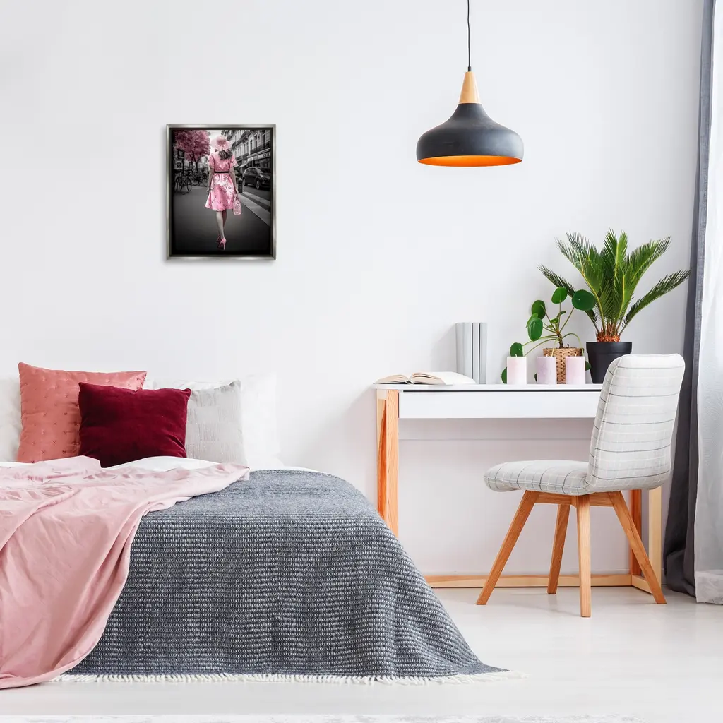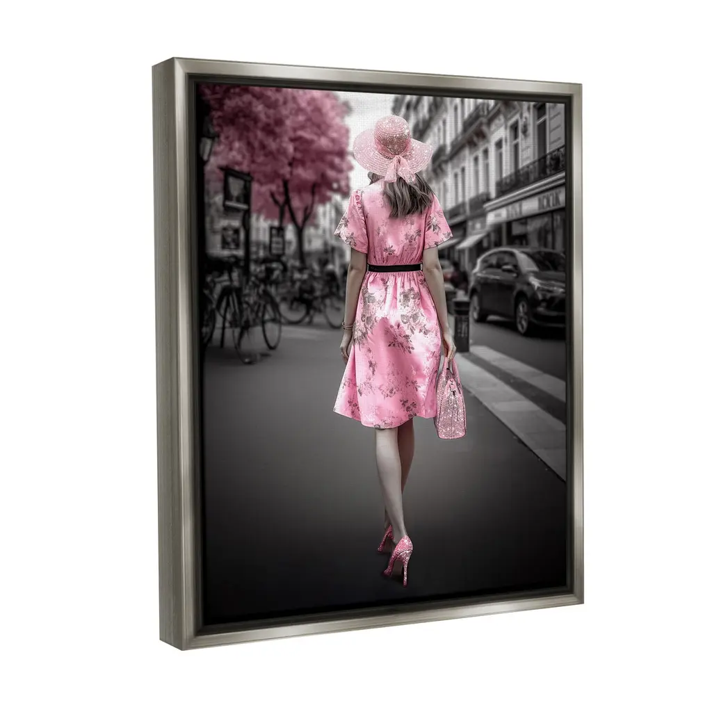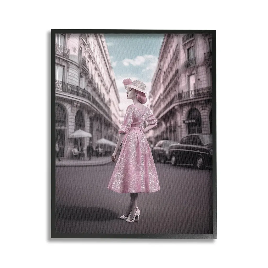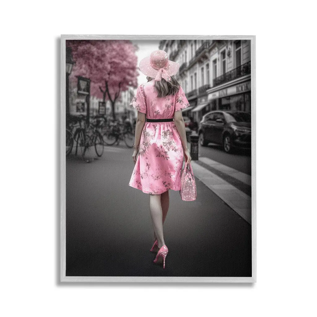 Elevate your home or office to the next level with Stupell Framed Floating Canvas Wall Art. Our premium hand-stretched canvas is mounted securely into a sturdy lightweight frame. The museum-style gap between the wrapped canvas and the box frame gives the illusion of floating artwork. Stupell Wall Art is made in the USA.Features: Dimensions: 17 x 1.7 x 21 Frame, 16 x 1.5 x 20 Canvas ArtFloating Frame Canvas Products are available in sizes 17"x21" and 25"x31". All Floating Frame Canvas Products have a 1.7" Depth.Wall Art is Ready to Hang with Hardware Free Hanging. No Installation required. For Easy Set Up Lean or Layer Artwork on Shelf or Against Wall. Artwork is Permently Fixed into the Frame.Our elevated 1.7" Thick Floating Frame is the perfect complement to our canvas style Wall Art. We use only the highest quality inks in house with industry leading printing solutions. Canvas is hand stretched over a durable wood foundation and then mounted securly into a Modern Box Frame. Made in the USA.Artwork Relates To: Clothing, Dress, Lady, Person, Female, Girl, City, Road, Street, Urban, Bicycle, Glam, Fashion, TownDesign by Ziwei Li