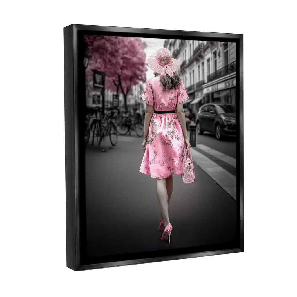 Elevate your home or office to the next level with Stupell Framed Floating Canvas Wall Art. Our premium hand-stretched canvas is mounted securely into a sturdy lightweight frame. The museum-style gap between the wrapped canvas and the box frame gives the illusion of floating artwork. Stupell Wall Art is made in the USA.Features: Dimensions: 17 x 1.7 x 21 Frame, 16 x 1.5 x 20 Canvas ArtFloating Frame Canvas Products are available in sizes 17"x21" and 25"x31". All Floating Frame Canvas Products have a 1.7" Depth.Wall Art is Ready to Hang with Hardware Free Hanging. No Installation required. For Easy Set Up Lean or Layer Artwork on Shelf or Against Wall. Artwork is Permently Fixed into the Frame.Our elevated 1.7" Thick Floating Frame is the perfect complement to our canvas style Wall Art. We use only the highest quality inks in house with industry leading printing solutions. Canvas is hand stretched over a durable wood foundation and then mounted securly into a Modern Box Frame. Made in the USA.Artwork Relates To: Clothing, Dress, Lady, Person, Female, Girl, City, Road, Street, Urban, Bicycle, Glam, Fashion, TownDesign by Ziwei Li