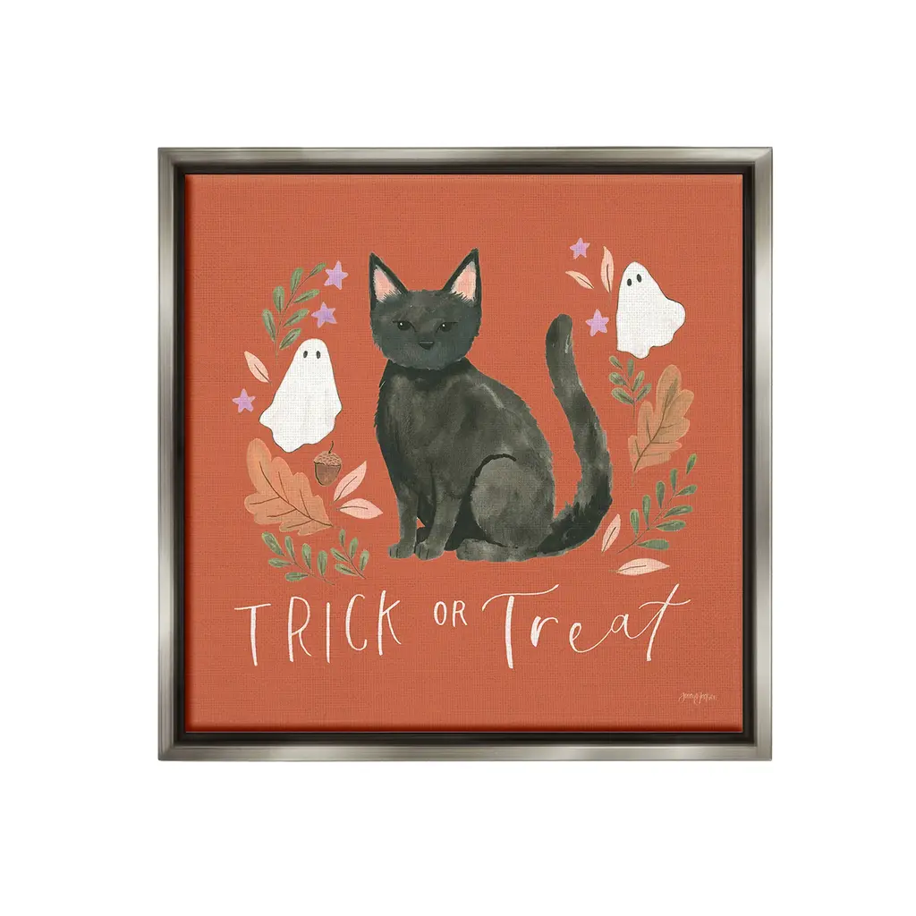 Elevate your home or office to the next level with Stupell Framed Floating Canvas Wall Art. Our premium hand-stretched canvas is mounted securely into a sturdy lightweight frame. The museum-style gap between the wrapped canvas and the box frame gives the illusion of floating artwork. Stupell Wall Art is made in the USA.Features: Dimensions: 18 x 1.7 x 18 Frame, 17 x 1.5 x 17 Canvas ArtFloating Frame Canvas Products are available in sizes 18"x18" and 25"x25". All Floating Frame Canvas Products have a 1.7" Depth.Wall Art is Ready to Hang with Hardware Free Hanging. No Installation required. For Easy Set Up Lean or Layer Artwork on Shelf or Against Wall. Artwork is Permently Fixed into the Frame.Our elevated 1.7" Thick Floating Frame is the perfect complement to our canvas style Wall Art. We use only the highest quality inks in house with industry leading printing solutions. Canvas is hand stretched over a durable wood foundation and then mounted securly into a Modern Box Frame. Made in the USA.Artwork Relates To: Festival, Halloween, Stars, Cat, Ghost, Botanical, Leaf, Whimsical, Trick or TreatDesign by Jenaya Jackson