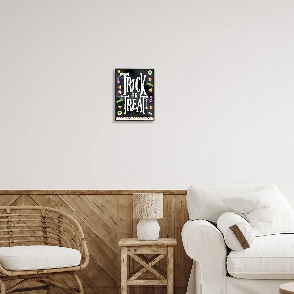 Stupell Trick Or Treat Halloween Candy Framed Giclee Art By Nd Art - 11 X 14 - Black