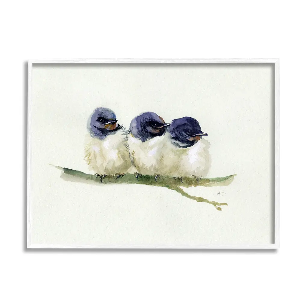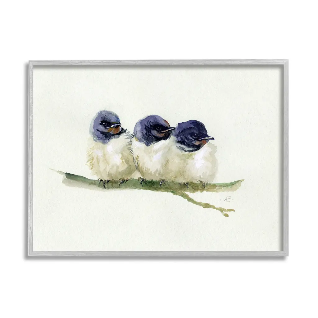 Stupell Trio Of Baby Swallows Birds Perched On Branch Framed Wall Art - Blue - 24 X 30 - Black