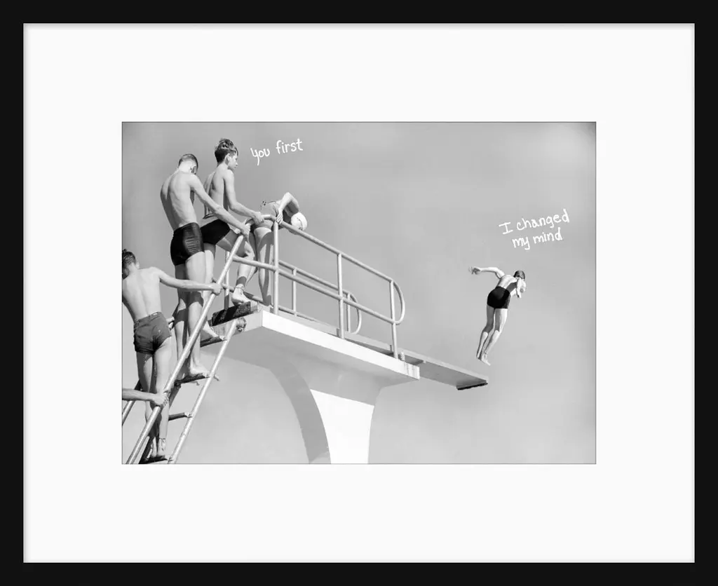 Stupell Trio Of Female Divers Just Keep Swimming Phrase Canvas Wall Art - Blue - 16 X 20