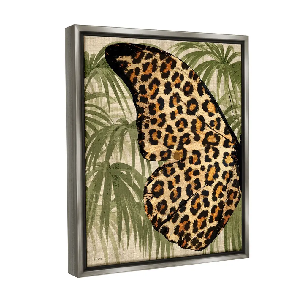 Elevate your home or office to the next level with Stupell Framed Floating Canvas Wall Art. Our premium hand-stretched canvas is mounted securely into a sturdy lightweight frame. The museum-style gap between the wrapped canvas and the box frame gives the illusion of floating artwork. Stupell Wall Art is made in the USA.Features: Dimensions: 17 x 1.7 x 21 Frame, 16 x 1.5 x 20 Canvas ArtFloating Frame Canvas Products are available in sizes 17"x21" and 25"x31". All Floating Frame Canvas Products have a 1.7" Depth.Wall Art is Ready to Hang with Hardware Free Hanging. No Installation required. For Easy Set Up Lean or Layer Artwork on Shelf or Against Wall. Artwork is Permently Fixed into the Frame.Our elevated 1.7" Thick Floating Frame is the perfect complement to our canvas style Wall Art. We use only the highest quality inks in house with industry leading printing solutions. Canvas is hand stretched over a durable wood foundation and then mounted securly into a Modern Box Frame. Made in the USA.Artwork Relates To: Jungle, Nature, Plant, Vegetation, Rainforest, Animal, Wildlife, Leaf, Floral, Pattern, Butterfly, Wing, Cheetah PatternDesign by Amber Sterling