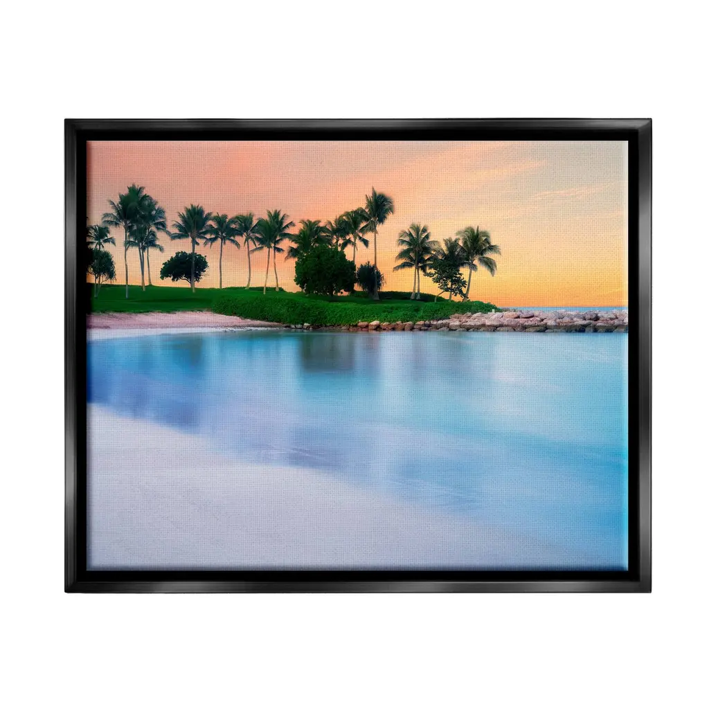 Elevate your home or office to the next level with Stupell Framed Floating Canvas Wall Art. Our premium hand-stretched canvas is mounted securely into a sturdy lightweight frame. The museum-style gap between the wrapped canvas and the box frame gives the illusion of floating artwork. Stupell Wall Art is made in the USA.Features: Dimensions: 21 x 1.7 x 17 Frame, 20 x 1.5 x 16 Canvas ArtFloating Frame Sizes Include Standard: 21 x 1.7 x 17 Oversized: 31 x 1.7 x 25Wall Art is Ready to Hang - No Installation or Hardware Needed. For Easy Set Up Lean or Layer Artwork on Shelf or Against Wall.Our elevated 1.7" Thick Floating Frame is the perfect complement to our canvas style Wall Art. We use only the highest quality inks in house with industry leading printing solutions. Canvas is hand stretched over a durable wood foundation and then mounted securly into a Modern Box Frame. Made in the USA.Artwork Relates To: Summer, Nature, Outdoors, Scenery, Tropical, Landscape, Beach, Coast, Sea, Shoreline, Water, Palm TreeDesign by Dennis Frates