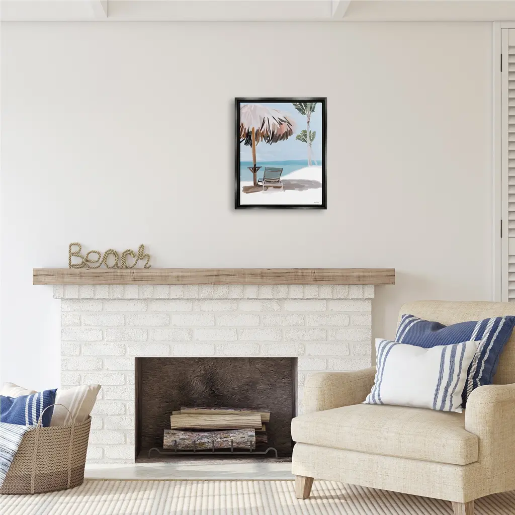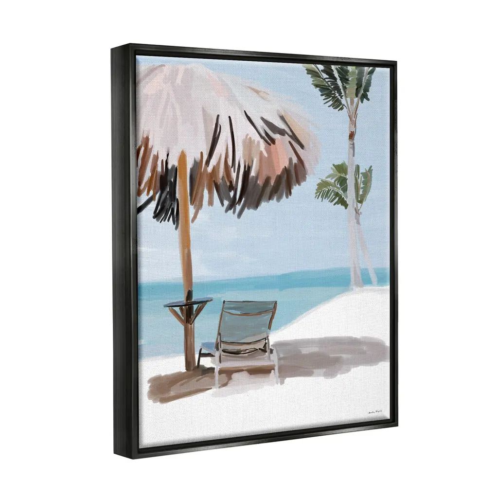 Elevate your home or office to the next level with Stupell Framed Floating Canvas Wall Art. Our premium hand-stretched canvas is mounted securely into a sturdy lightweight frame. The museum-style gap between the wrapped canvas and the box frame gives the illusion of floating artwork. Stupell Wall Art is made in the USA.Features: Dimensions: 17 x 1.7 x 21 Frame, 16 x 1.5 x 20 Canvas ArtFloating Frame Sizes Include Standard: 17 x 1.7 x 21 Oversized: 25 x 1.7 x 31Wall Art is Ready to Hang with Hardware Free Hanging. No installation required. For Easy Set Up Lean or Layer Artwork on Shelf or Against Wall.Our elevated 1.7" Thick Floating Frame is the perfect complement to our canvas style Wall Art. We use only the highest quality inks in house with industry leading printing solutions. Canvas is hand stretched over a durable wood foundation and then mounted securly into a Modern Box Frame. Made in the USA.Artwork Relates To: Summer, Sky, Beach, Coast, Sea, Shoreline, Water, Scenery, Palm TreeDesign by Amelia Noyes