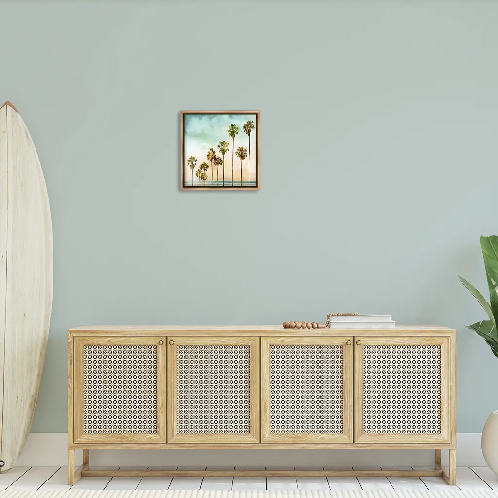 Elevate your home or office to the next level with Stupell Framed Floating Canvas Wall Art. Our premium hand-stretched canvas is mounted securely into a sturdy lightweight frame. The museum-style gap between the wrapped canvas and the box frame gives the illusion of floating artwork. Stupell Wall Art is made in the USA.Features: Dimensions: 18 x 1.7 x 18 Frame, 17 x 1.5 x 17 Canvas ArtFloating Frame Canvas Products are available in sizes 18"x18" and 25"x25". All Floating Frame Canvas Products have a 1.7" Depth.Wall Art is Ready to Hang with Hardware Free Hanging. No Installation required. For Easy Set Up Lean or Layer Artwork on Shelf or Against Wall. Artwork is Permently Fixed into the Frame.Our elevated 1.7" Thick Floating Frame is the perfect complement to our canvas style Wall Art. We use only the highest quality inks in house with industry leading printing solutions. Canvas is hand stretched over a durable wood foundation and then mounted securly into a Modern Box Frame. Made in the USA.Artwork Relates To: Tropical, Landscape, Palm Trees, Nautical, Beach, Summer, SkyDesign by Devon Davis