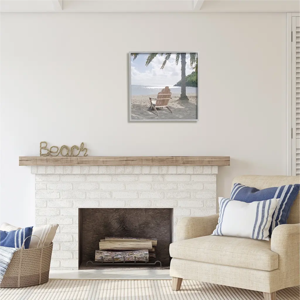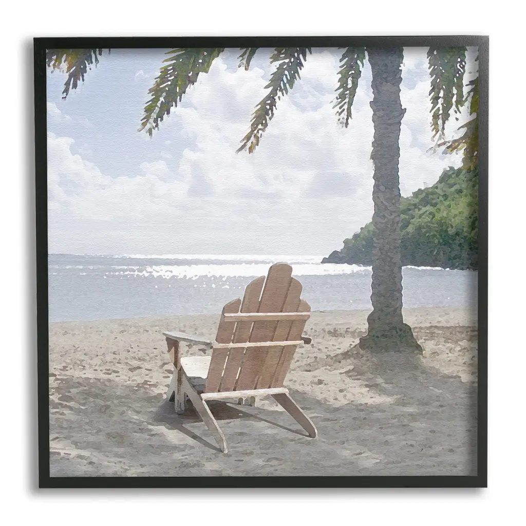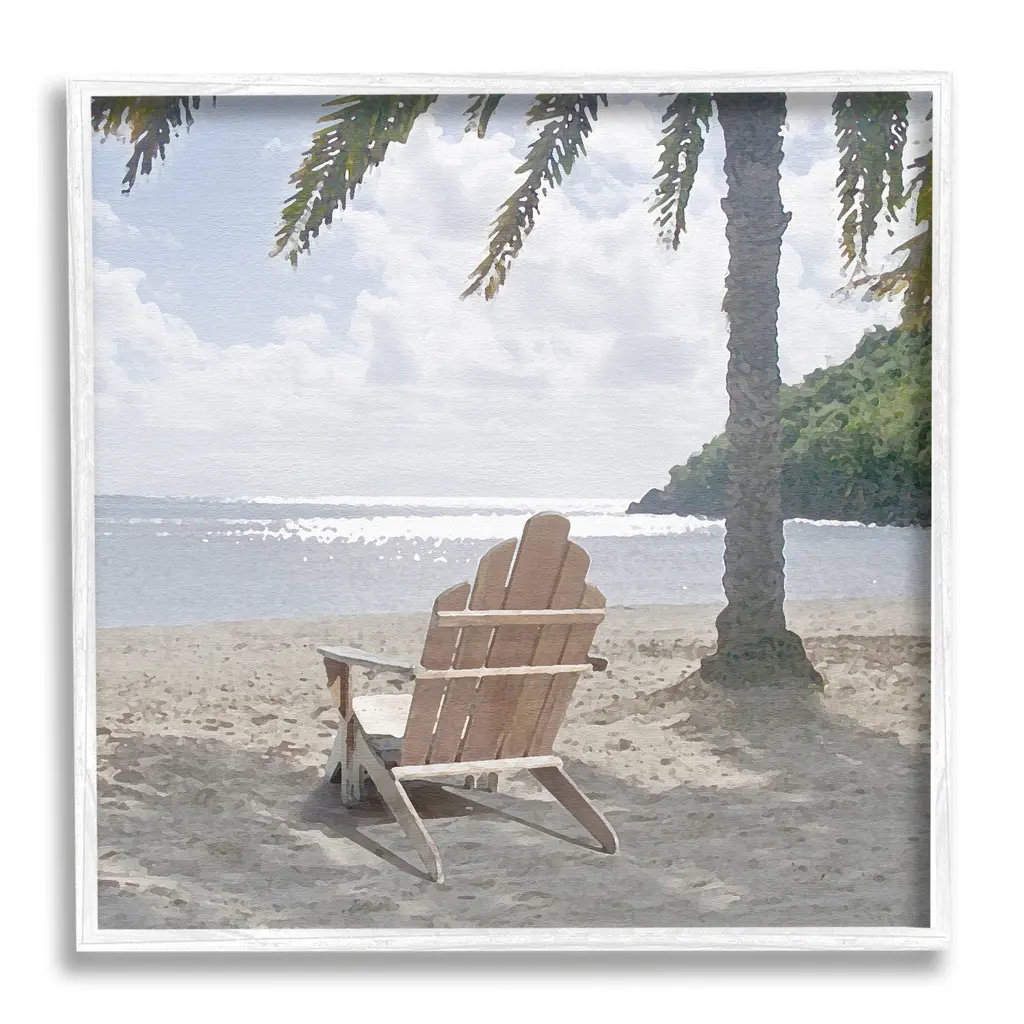 Add dimension to any room with our textured Framed Giclee Artwork. Our framed artwork is securely mounted into a 1.5-inch thick wood grain frame and ready to hang. Frames are available in three alluring styles: black, gray farmhouse and white. In addition, you should check out our oversized options if you want a statement piece. Stupell Wall Art is made in the USA.Features: Dimensions: 12 x 1.5 x 12 FramedFramed Giclee Sizes Include Standard: 12 x 1.5 x 12 Large: 17 x 1.5 x 17 Oversized: 24 x 1.5 x 24Wall Art is Ready to Hang with Hardware Free Hanging. No installation required. For Easy Set Up Lean or Layer Artwork on Shelf or Against Wall.Our giclée prints are carefully mounted on a durable MDF backing, and then perfectly finished in a 1.5 inch thick woodgrain frame. Mounted frame colors include black, gray farmhouse and white. Made In USA.Artwork Relates To: Chair, Painting, Armchair, Nature, Outdoors, Sea, Water, Beach, Shore, Palm TreeDesign by Noah Bay