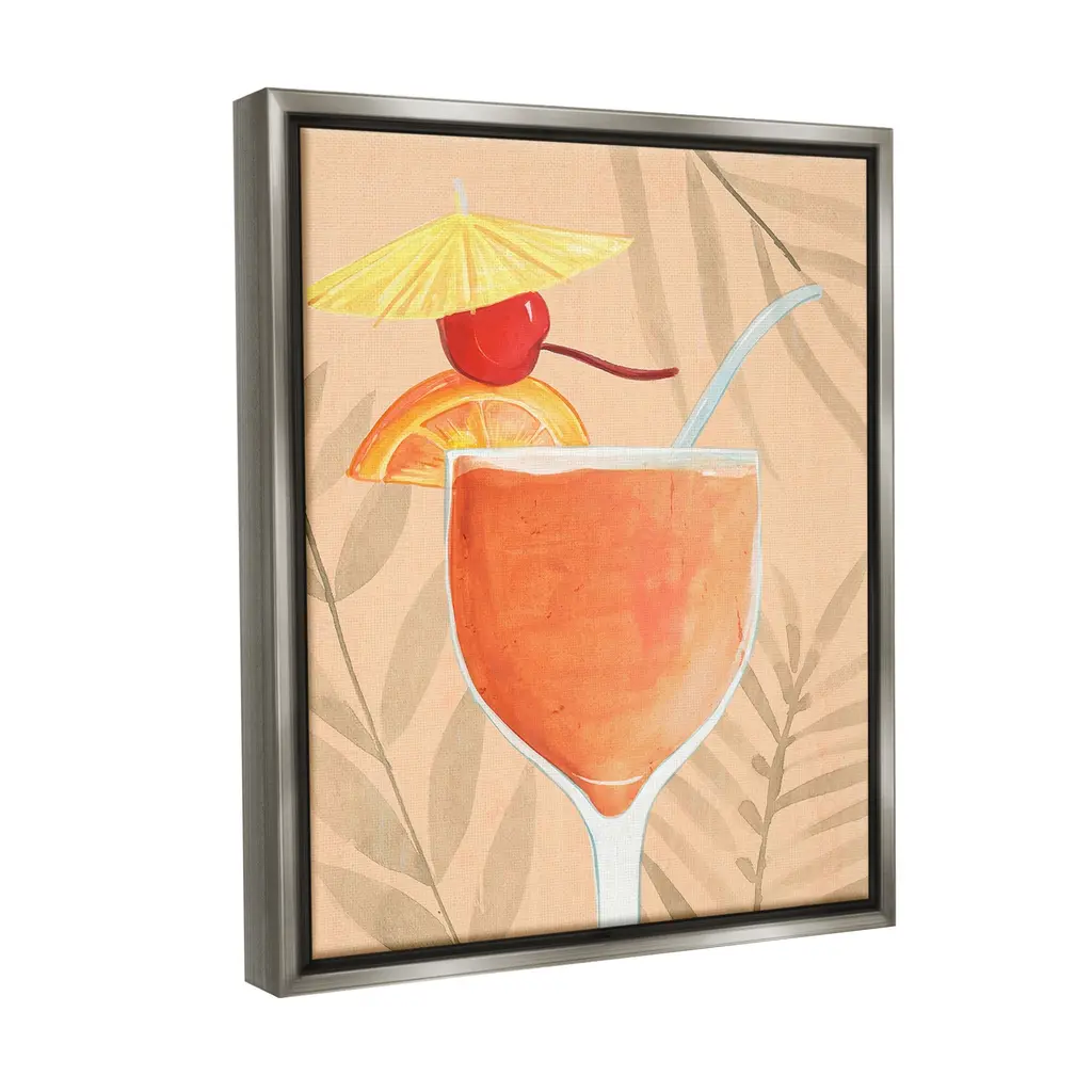 Elevate your home or office to the next level with Stupell Framed Floating Canvas Wall Art. Our premium hand-stretched canvas is mounted securely into a sturdy lightweight frame. The museum-style gap between the wrapped canvas and the box frame gives the illusion of floating artwork. Stupell Wall Art is made in the USA.Features: Dimensions: 17 x 1.7 x 21 Frame, 16 x 1.5 x 20 Canvas ArtFloating Frame Canvas Products are available in sizes 17"x21" and 25"x31". All Floating Frame Canvas Products have a 1.7" Depth.Wall Art is Ready to Hang with Hardware Free Hanging. No Installation required. For Easy Set Up Lean or Layer Artwork on Shelf or Against Wall. Artwork is Permently Fixed into the Frame.Our elevated 1.7" Thick Floating Frame is the perfect complement to our canvas style Wall Art. We use only the highest quality inks in house with industry leading printing solutions. Canvas is hand stretched over a durable wood foundation and then mounted securly into a Modern Box Frame. Made in the USA.Artwork Relates To: Alcohol, Beverage, Cocktail, Fruit, Plant, Citrus, Grapefruit, Liquor, Wine, Modern, TropicalDesign by Annie Warren