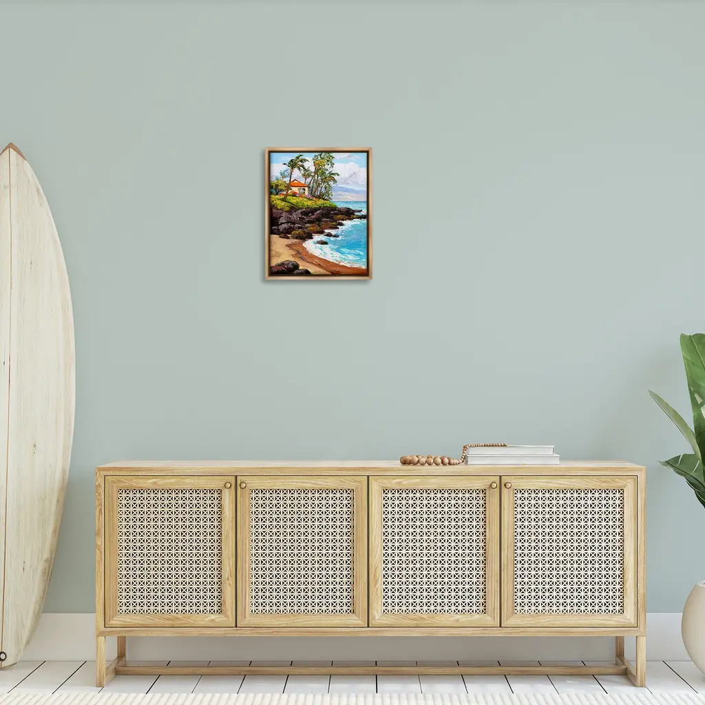 Elevate your home or office to the next level with Stupell Framed Floating Canvas Wall Art. Our premium hand-stretched canvas is mounted securely into a sturdy lightweight frame. The museum-style gap between the wrapped canvas and the box frame gives the illusion of floating artwork. Stupell Wall Art is made in the USA.Features: Dimensions: 17 x 1.7 x 21 Frame, 16 x 1.5 x 20 Canvas ArtFloating Frame Canvas Products are available in sizes 17"x21" and 25"x31". All Floating Frame Canvas Products have a 1.7" Depth.Wall Art is Ready to Hang with Hardware Free Hanging. No Installation required. For Easy Set Up Lean or Layer Artwork on Shelf or Against Wall. Artwork is Permently Fixed into the Frame.Our elevated 1.7" Thick Floating Frame is the perfect complement to our canvas style Wall Art. We use only the highest quality inks in house with industry leading printing solutions. Canvas is hand stretched over a durable wood foundation and then mounted securly into a Modern Box Frame. Made in the USA.Artwork Relates To: Summer, Scenery, Sea, Water, Shoreline, Beach, Coast, Shore, Cottage, Cove, Cliff, Palm Tree, TropicalDesign by Erin Dertner