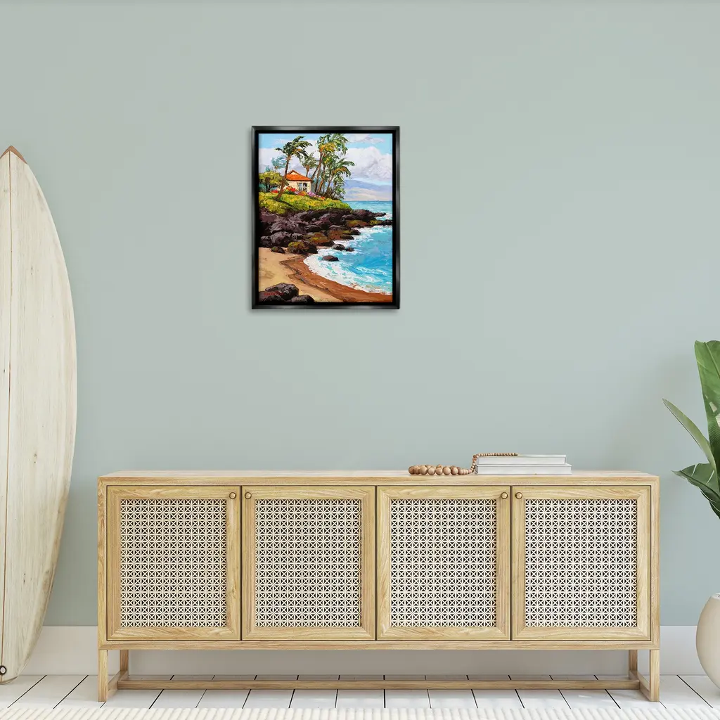 Elevate your home or office to the next level with Stupell Framed Floating Canvas Wall Art. Our premium hand-stretched canvas is mounted securely into a sturdy lightweight frame. The museum-style gap between the wrapped canvas and the box frame gives the illusion of floating artwork. Stupell Wall Art is made in the USA.Features: Dimensions: 17 x 1.7 x 21 Frame, 16 x 1.5 x 20 Canvas ArtFloating Frame Canvas Products are available in sizes 17"x21" and 25"x31". All Floating Frame Canvas Products have a 1.7" Depth.Wall Art is Ready to Hang with Hardware Free Hanging. No Installation required. For Easy Set Up Lean or Layer Artwork on Shelf or Against Wall. Artwork is Permently Fixed into the Frame.Our elevated 1.7" Thick Floating Frame is the perfect complement to our canvas style Wall Art. We use only the highest quality inks in house with industry leading printing solutions. Canvas is hand stretched over a durable wood foundation and then mounted securly into a Modern Box Frame. Made in the USA.Artwork Relates To: Summer, Scenery, Sea, Water, Shoreline, Beach, Coast, Shore, Cottage, Cove, Cliff, Palm Tree, TropicalDesign by Erin Dertner