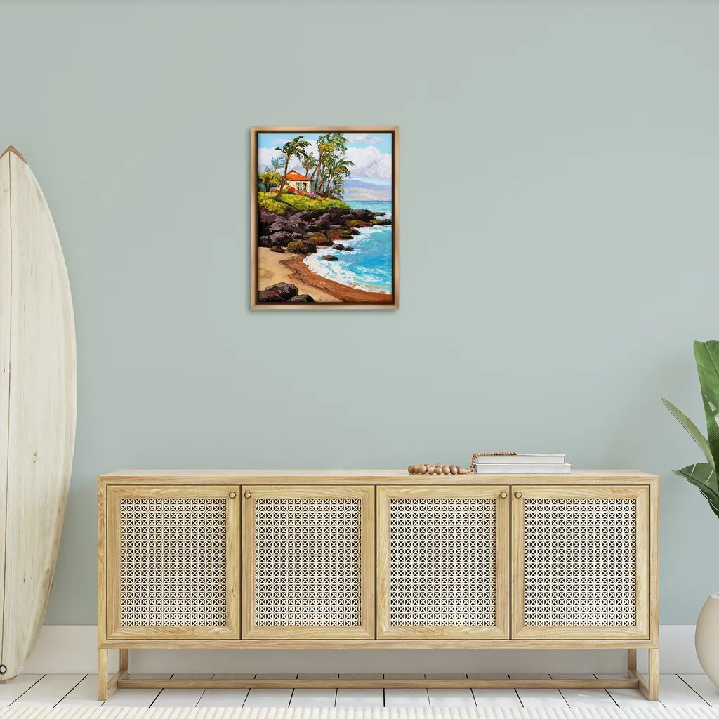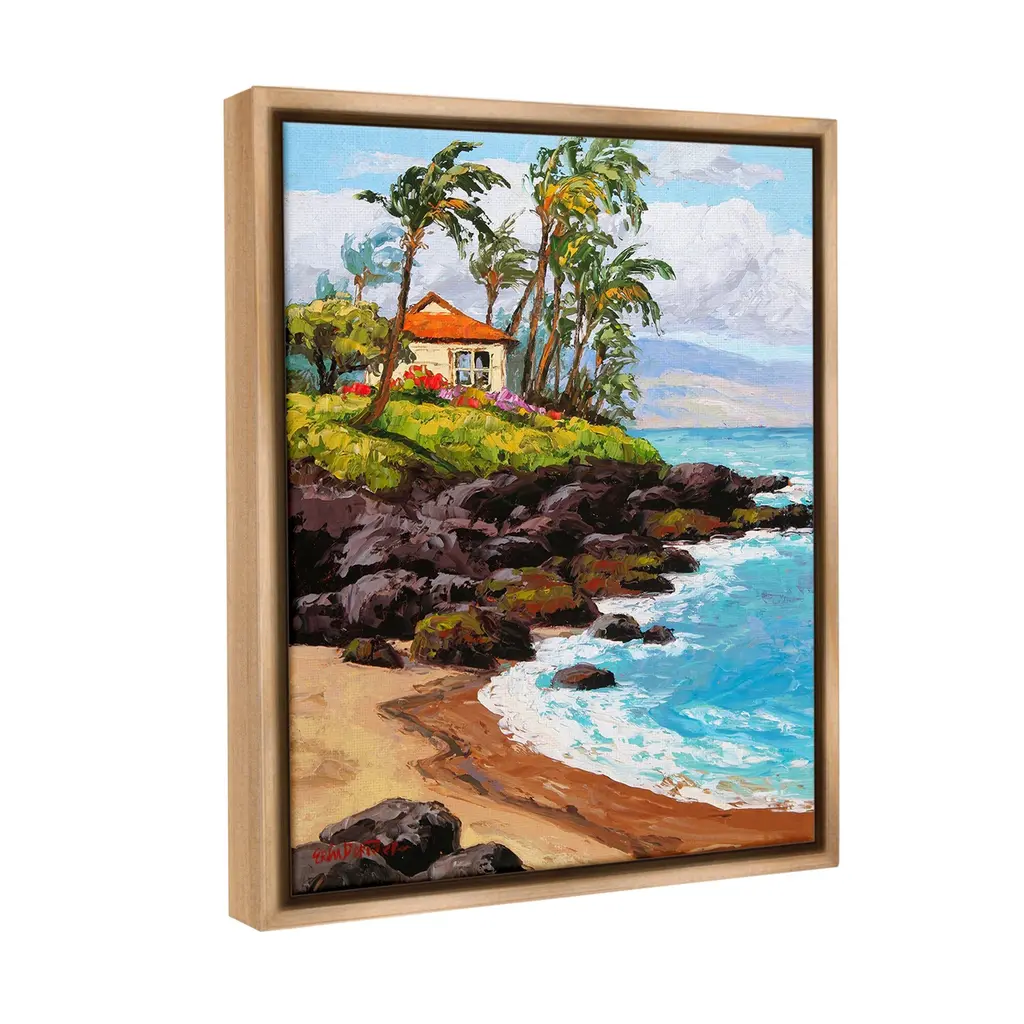 Elevate your home or office to the next level with Stupell Framed Floating Canvas Wall Art. Our premium hand-stretched canvas is mounted securely into a sturdy lightweight frame. The museum-style gap between the wrapped canvas and the box frame gives the illusion of floating artwork. Stupell Wall Art is made in the USA.Features: Dimensions: 17 x 1.7 x 21 Frame, 16 x 1.5 x 20 Canvas ArtFloating Frame Canvas Products are available in sizes 17"x21" and 25"x31". All Floating Frame Canvas Products have a 1.7" Depth.Wall Art is Ready to Hang with Hardware Free Hanging. No Installation required. For Easy Set Up Lean or Layer Artwork on Shelf or Against Wall. Artwork is Permently Fixed into the Frame.Our elevated 1.7" Thick Floating Frame is the perfect complement to our canvas style Wall Art. We use only the highest quality inks in house with industry leading printing solutions. Canvas is hand stretched over a durable wood foundation and then mounted securly into a Modern Box Frame. Made in the USA.Artwork Relates To: Summer, Scenery, Sea, Water, Shoreline, Beach, Coast, Shore, Cottage, Cove, Cliff, Palm Tree, TropicalDesign by Erin Dertner
