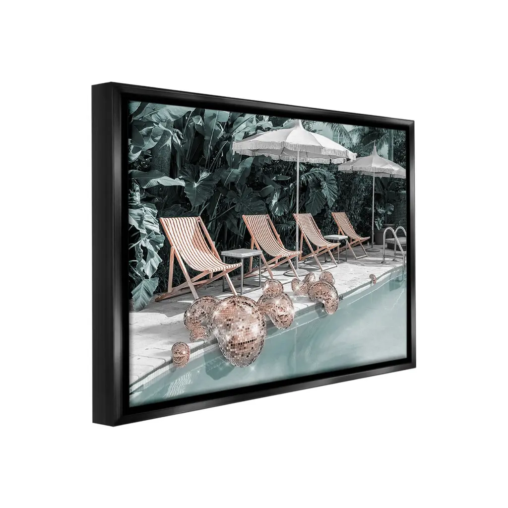 Elevate your home or office to the next level with Stupell Framed Floating Canvas Wall Art. Our premium hand-stretched canvas is mounted securely into a sturdy lightweight frame. The museum-style gap between the wrapped canvas and the box frame gives the illusion of floating artwork. Stupell Wall Art is made in the USA.Features: Dimensions: 21 x 1.7 x 17 Frame, 20 x 1.5 x 16 Canvas ArtFloating Frame Canvas Products are available in sizes 21"x17" and 31"x25". All Floating Frame Canvas Products have a 1.7" Depth.Wall Art is Ready to Hang with Hardware Free Hanging. No Installation required. For Easy Set Up Lean or Layer Artwork on Shelf or Against Wall. Artwork is Permently Fixed into the Frame.Our elevated 1.7" Thick Floating Frame is the perfect complement to our canvas style Wall Art. We use only the highest quality inks in house with industry leading printing solutions. Canvas is hand stretched over a durable wood foundation and then mounted securly into a Modern Box Frame. Made in the USA.Artwork Relates To: Dance, Music, Disco, Pattern, Abstract, Shape, Modern, Glam, Tropical, Summer, PoolDesign by Ziwei Li
