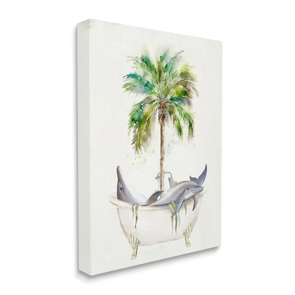 Stupell Tropical Dolphins Bathroom Tub Canvas Wall Art By Ziwei Li - 30 X 40