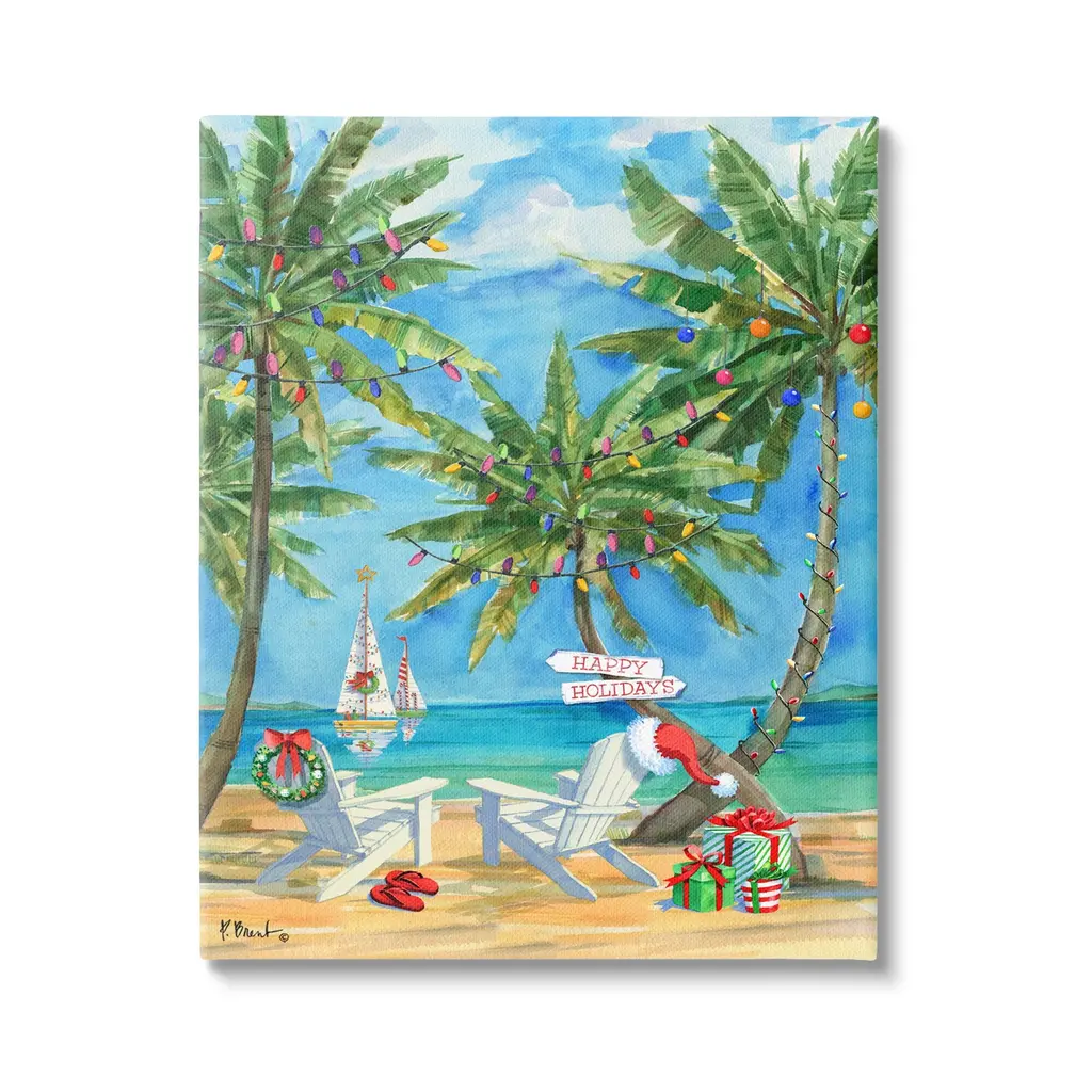 Stupell Tropical Flamingo Christmas Nautical Palm Tree Canvas Wall Art - Multi-Color - 30 X 40