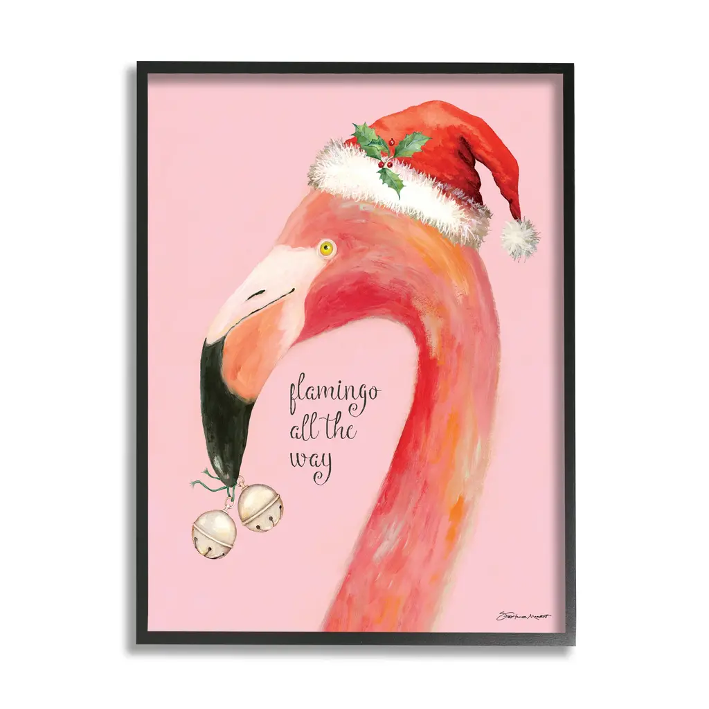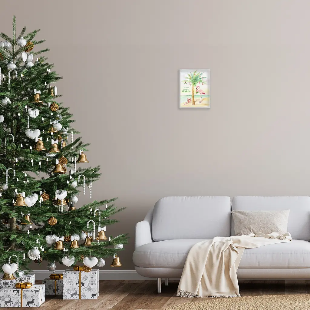 Stupell Tropical Flamingo Christmas Nautical Palm Tree Framed Wall Art - Multi-Color - 11 X 14 - Grey