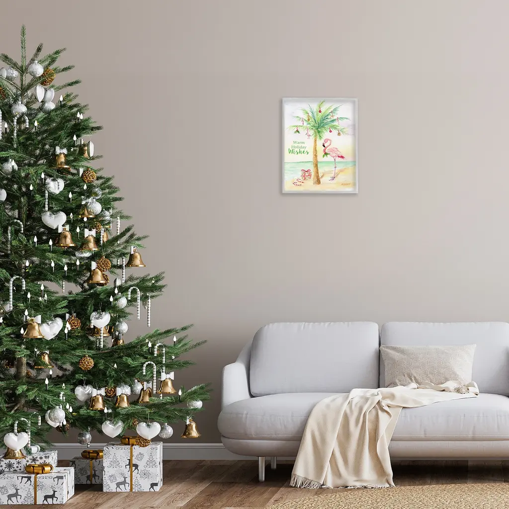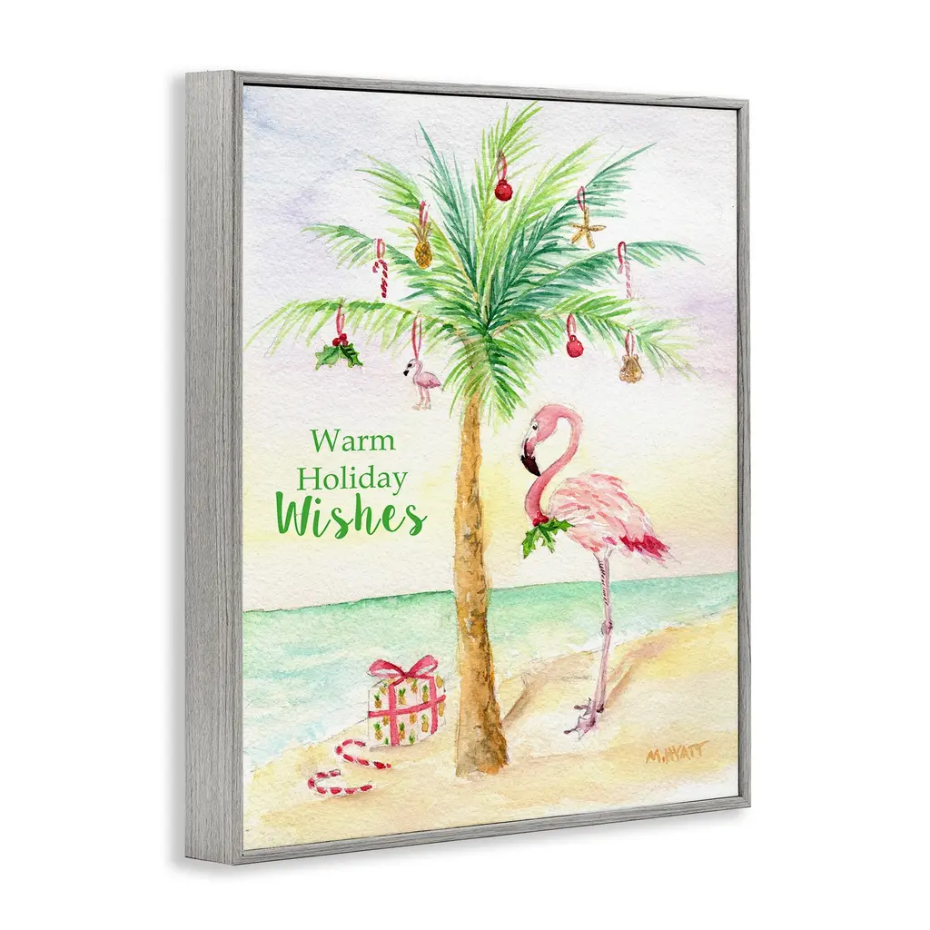 Stupell Tropical Flamingo Christmas Nautical Palm Tree Framed Wall Art - Multi-Color - 16 X 20 - Grey