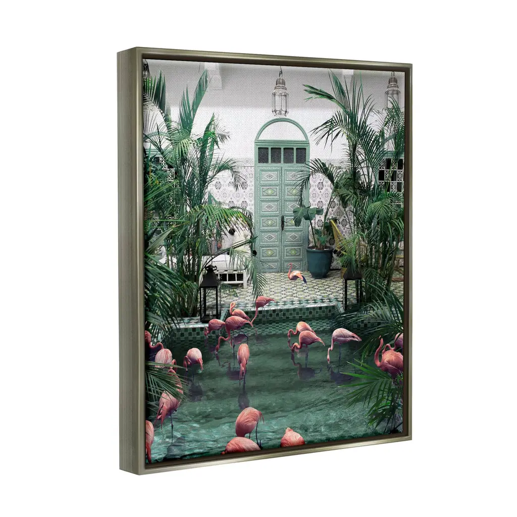 Elevate your home or office to the next level with Stupell Framed Floating Canvas Wall Art. Our premium hand stretched canvas is mounted securely into a sturdy lightweight frame. The museum style gap between wrapped canvas and box frame gives the illusion of floating artwork.Features:Dimensions: 17 x 1.7 x 21 Frame, 16 x 1.5 x 20 Canvas ArtFloating Frame Sizes IncludeStandard: 17 x 1.7 x 21Oversized: 25 x 1.7 x 31Wall Art is Ready to Hang - No Installation or Hardware Needed. For Easy Set Up Lean or Layer Artwork on Shelf or Against Wall.Our elevated 1.7" Thick Floating Frame is the perfect complement to our canvas style Wall Art. We use only the highest quality inks in house with industry leading printing solutions. Canvas is hand stretched over a durable wood foundation and then mounted securely into a Modern Box Frame. Made in the USA.Artwork Relates To: Animal; Plant; Bird; Flamingo; Flock; Beak; Tree, Palm Tree, TropicalDesign by Ziwei Li