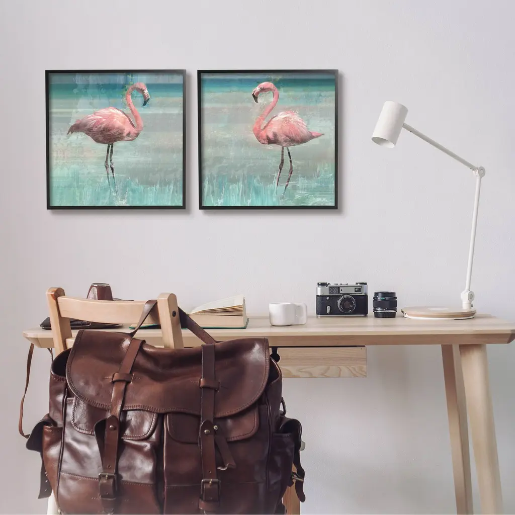 Fill any space in your home or office with our Framed Wall Art Sets. Our textured artwork will add more depth and dimension to any space. Each piece is mounted into a 1.5 inch thick ebony wood grain frame that is ready to hang. Looking for a statement piece? Our boxed framed products are now available in three alluring styles: black, gray farmhouse and white. We have oversized artwork available.Features:Dimensions: 2 Piece Set, Each Panel is 12 x 1.5 x 12 FramedFramed Giclee Set Sizes IncludeStandard: 2pc, Each is 12 x 1.5 x 12Large: 2pc, Each is 17 x 1.5 x 17Oversized: 2pc, Each is 24 x 1.5 x 24Wall Art is Ready to Hang - No Installation or Hardware Needed. For Easy Set Up Lean or Layer Artwork on Shelf or Against Wall.Curated Wall Art Sets make it easy for you complete the theme for any room. Our giclee prints are carefully mounted on a durable MDF backing, and then perfectly finished in a 1.5 inch thick woodgrain frame. Mounted frame colors include black, gray farmhouse and white. Made In USA.Artwork Relates To: Bird; Animal; Flamingo; Beak; Scenery, TropicalDesign by Nan