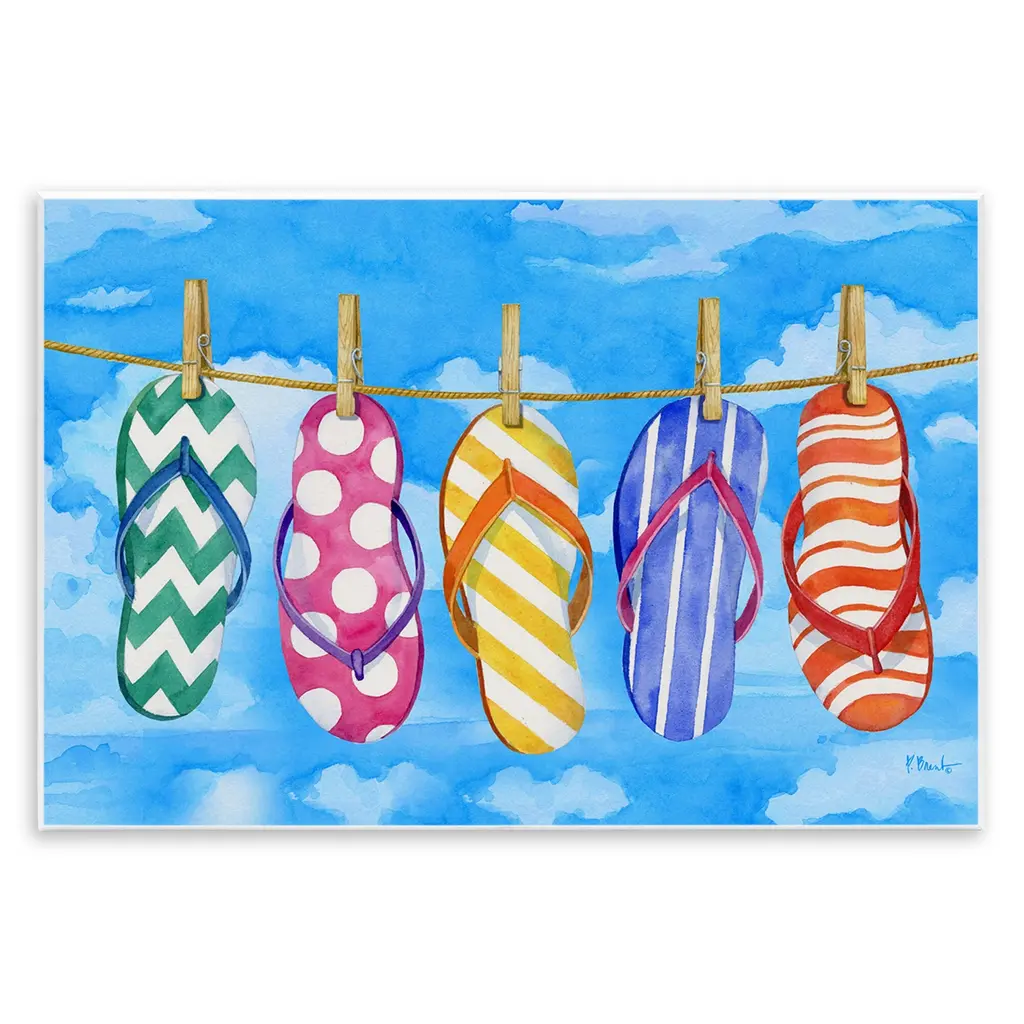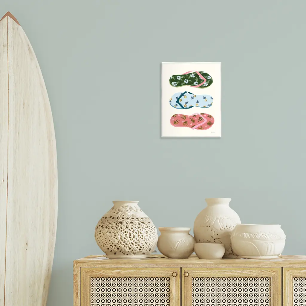 Our wall plaques start as high-quality lithograph prints mounted on durable 0.5-inch thick MDF wood. Each piece is hand finished and comes with a fresh layer of white foil on the sides to give it a crisp, clean look. Plaques arrive ready to hang without installation and come with removable plastic corners to keep them from damage in transit. Stupell Wall Art is made in the USA.Features: Dimensions: 11 x 0.5 x 14 InchesWall Art is Ready to Hang with Hardware Free Hanging. No installation required. For Easy Set Up Lean or Layer Artwork on Shelf or Against Wall.All of our wall plaques start off as high quality lithograph prints that are then mounted on durable 0.5 inch thick MDF wood. Each piece is hand finished and comes with a fresh layer of foil on the sides to give it a crisp clean look. Made In USA.Artwork Relates To: Tropical, Beach, Summer, Accessories, SandalsDesign by Yvette St. Amant