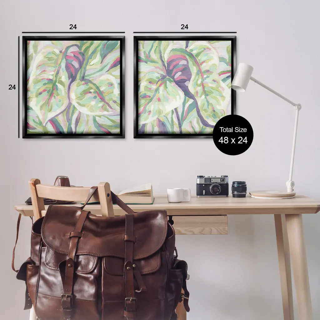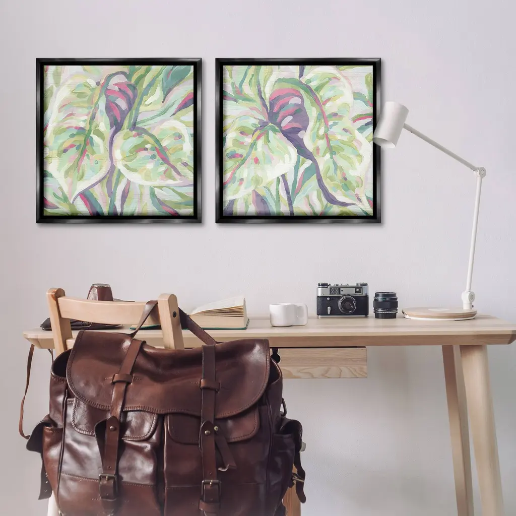 Elevate your home or office to the next level with Stupell Framed Floating Canvas Wall Art. Our premium hand-stretched canvas is mounted securely into a sturdy lightweight frame. The museum-style gap between the wrapped canvas and the box frame gives the illusion of floating artwork. Stupell Wall Art is made in the USA.Features: Dimensions: 2 Piece Set, Each Frame is 18 x 1.7 x 18Two Piece Floating Frame Canvas Products are available as 18"x18" or 25"x25" Panels. All Floating Frame Canvas Products have a 1.7" Depth.Wall Art is Ready to Hang with Hardware Free Hanging. No Installation required. For Easy Set Up Lean or Layer Artwork on Shelf or Against Wall. Artwork is Permently Fixed into the Frame.Our elevated 1.7" Thick Floating Frame is the perfect complement to our canvas style Wall Art. We use only the highest quality inks in house with industry leading printing solutions. Canvas is hand stretched over a durable wood foundation and then mounted securly into a Modern Box Frame. Made in the USA.Artwork Relates To: Modern, Pattern, Painting, Floral, Plant, Botanical, Leaf, Tropical, Jungle, AbstractDesign by June Erica Vess