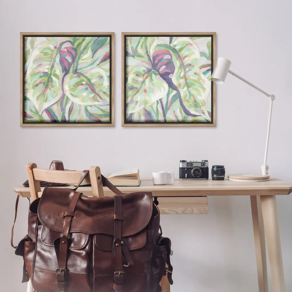 Elevate your home or office to the next level with Stupell Framed Floating Canvas Wall Art. Our premium hand-stretched canvas is mounted securely into a sturdy lightweight frame. The museum-style gap between the wrapped canvas and the box frame gives the illusion of floating artwork. Stupell Wall Art is made in the USA.Features: Dimensions: 2 Piece Set, Each Frame is 18 x 1.7 x 18Two Piece Floating Frame Canvas Products are available as 18"x18" or 25"x25" Panels. All Floating Frame Canvas Products have a 1.7" Depth.Wall Art is Ready to Hang with Hardware Free Hanging. No Installation required. For Easy Set Up Lean or Layer Artwork on Shelf or Against Wall. Artwork is Permently Fixed into the Frame.Our elevated 1.7" Thick Floating Frame is the perfect complement to our canvas style Wall Art. We use only the highest quality inks in house with industry leading printing solutions. Canvas is hand stretched over a durable wood foundation and then mounted securly into a Modern Box Frame. Made in the USA.Artwork Relates To: Modern, Pattern, Painting, Floral, Plant, Botanical, Leaf, Tropical, Jungle, AbstractDesign by June Erica Vess