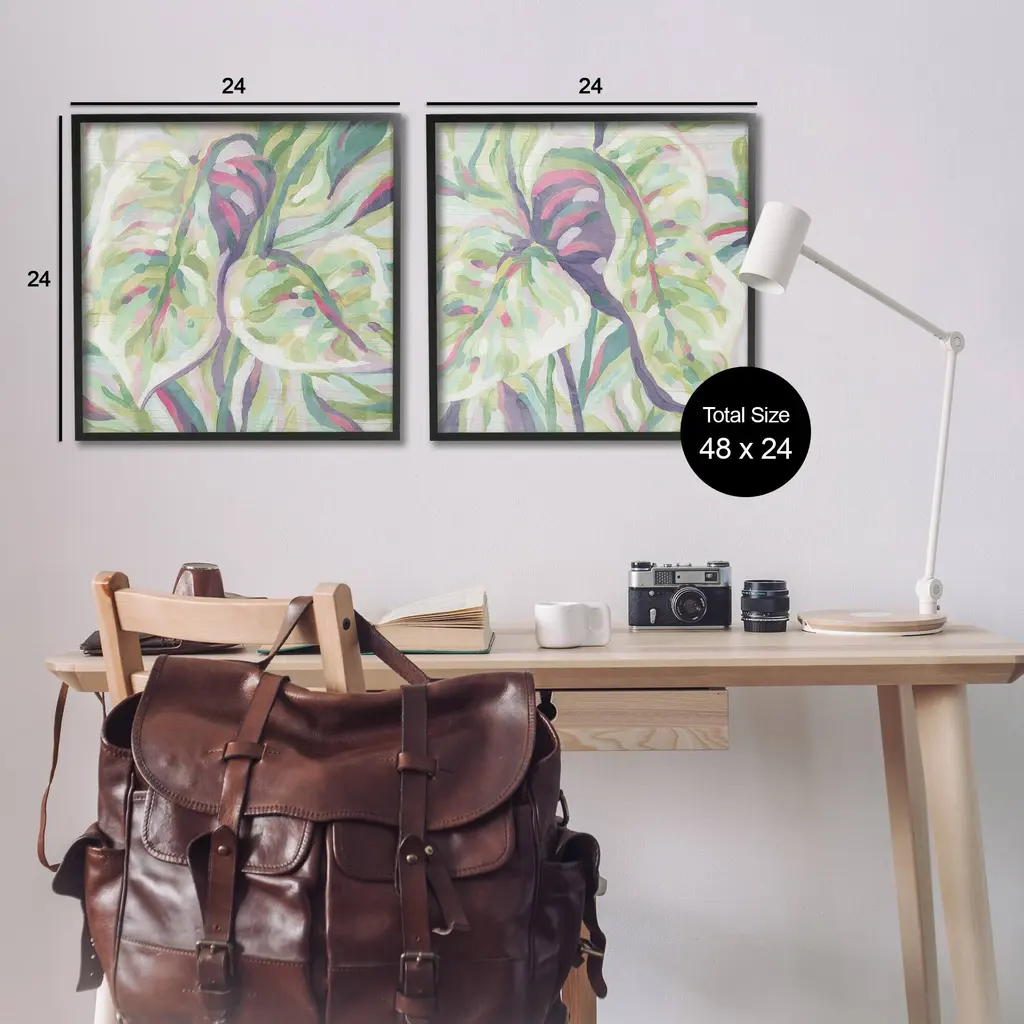Fill any space in your home or office with our Framed Wall Art Sets. Our framed artwork is securely mounted into a 1.5-inch thick wood grain frame and ready to hang. Frames are available in three alluring styles: black, gray farmhouse and white. Stupell Wall Art is made in the USA.Features: Dimensions: 2 Piece Set, Each Panel is 12 x 1.5 x 12 FramedTwo Piece Framed Giclee Sets are available as 12"x12", 17"x17" or 24"x24" Panels. All Framed giclee Products have a 1.5" Depth.Wall Art is Ready to Hang with Hardware Free Hanging. No installation required. For Easy Set Up Lean or Layer Artwork on Shelf or Against Wall.Curated Wall Art Sets make it easy for you complete the theme for any room. Our giclée prints are carefully mounted on a durable MDF backing, and then perfectly finished in a 1.5 inch thick woodgrain frame. Mounted frame colors include black, gray farmhouse and white. Made In USA.Artwork Relates To: Modern, Pattern, Painting, Floral, Plant, Botanical, Leaf, Tropical, Jungle, AbstractDesign by June Erica Vess