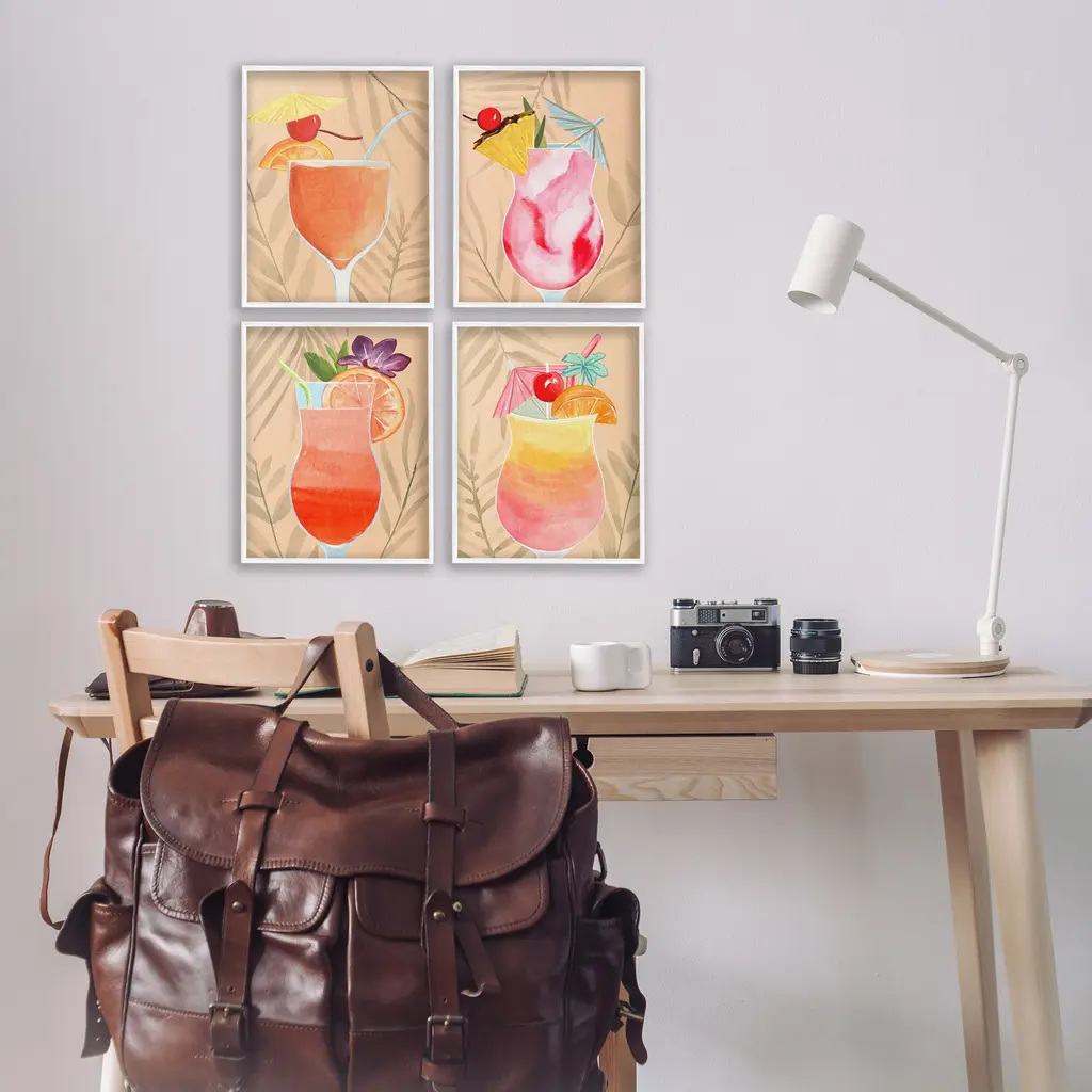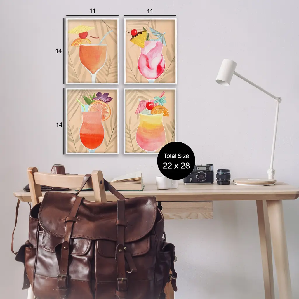 Fill any space in your home or office with our Framed Wall Art Sets. Our framed artwork is securely mounted into a 1.5-inch thick wood grain frame and ready to hang. Frames are available in three alluring styles: black, gray farmhouse and white. Stupell Wall Art is made in the USA.Features: Dimensions: 4 Piece Set, Each Panel is 11 x 1.5 x 14 FramedFramed Giclee Sets are available as 11"x14" or 16"x20" Panels. All Framed Giclee Products have a 1.5" Depth.Wall Art is Ready to Hang with Hardware Free Hanging. No installation required. For Easy Set Up Lean or Layer Artwork on Shelf or Against Wall.Curated Wall Art Sets make it easy for you complete the theme for any room. Our giclée prints are carefully mounted on a durable MDF backing, and then perfectly finished in a 1.5 inch thick woodgrain frame. Mounted frame colors include black, gray farmhouse and white. Made In USA.Artwork Relates To: Glass, Alcohol, Beverage, Cocktail, Juice, Fruit, Plant, Citrus, Liquor, Wine, Botanical, Pattern, TropicalDesign by Annie Warren