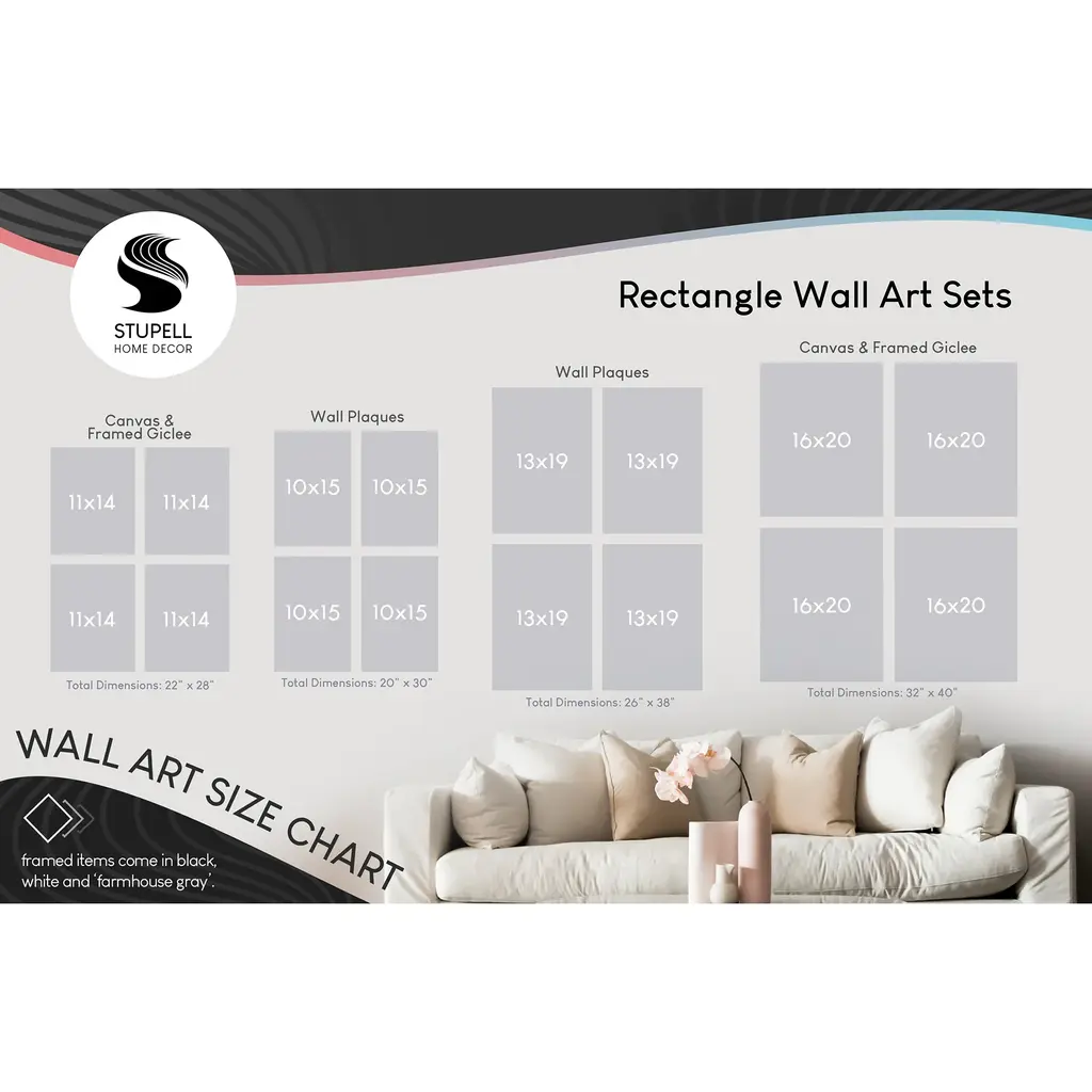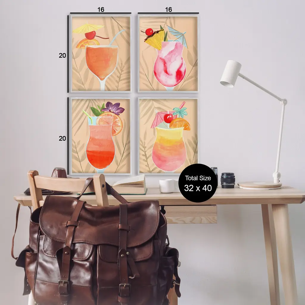 Fill any space in your home or office with our Framed Wall Art Sets. Our framed artwork is securely mounted into a 1.5-inch thick wood grain frame and ready to hang. Frames are available in three alluring styles: black, gray farmhouse and white. Stupell Wall Art is made in the USA.Features: Dimensions: 4 Piece Set, Each Panel is 11 x 1.5 x 14 FramedFramed Giclee Sets are available as 11"x14" or 16"x20" Panels. All Framed Giclee Products have a 1.5" Depth.Wall Art is Ready to Hang with Hardware Free Hanging. No installation required. For Easy Set Up Lean or Layer Artwork on Shelf or Against Wall.Curated Wall Art Sets make it easy for you complete the theme for any room. Our giclée prints are carefully mounted on a durable MDF backing, and then perfectly finished in a 1.5 inch thick woodgrain frame. Mounted frame colors include black, gray farmhouse and white. Made In USA.Artwork Relates To: Glass, Alcohol, Beverage, Cocktail, Juice, Fruit, Plant, Citrus, Liquor, Wine, Botanical, Pattern, TropicalDesign by Annie Warren