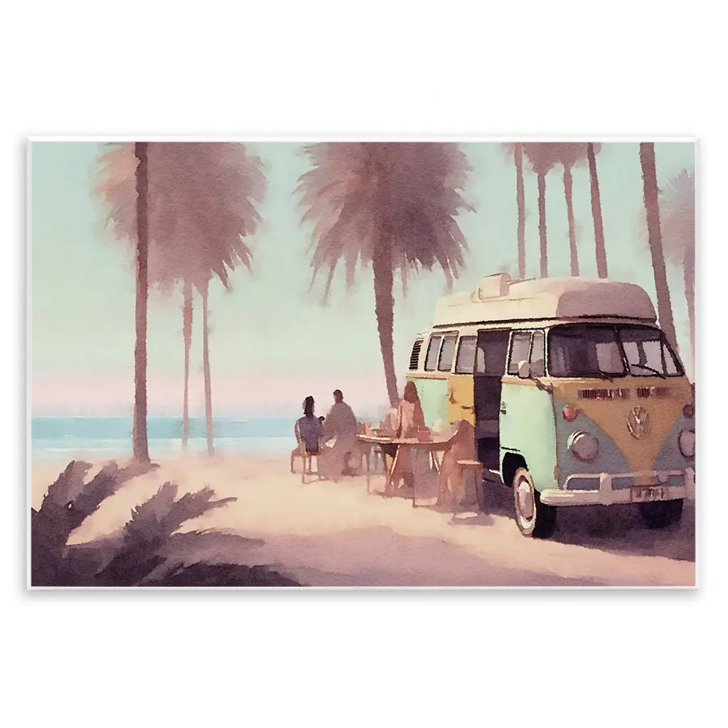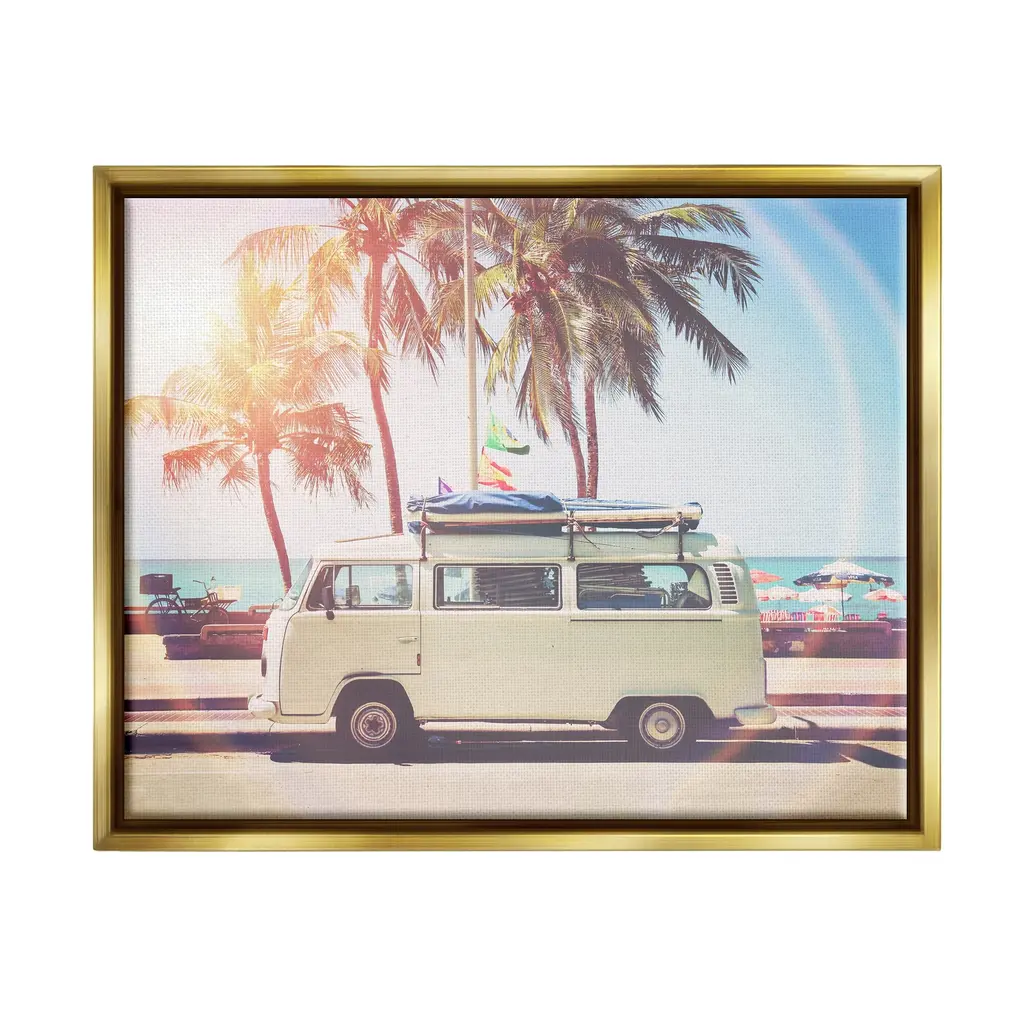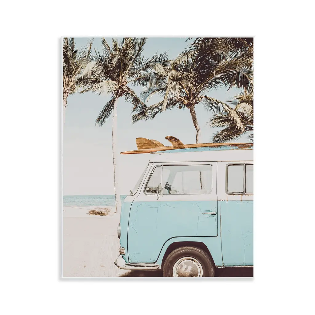 We create our stretched canvas to the highest standards. Using only the highest quality inks and canvas on Mimaki printers, we hand-cut and stretch each piece over a 1.5-inch thick wooden frame for hanging. As a result, the art comes ready to hang on the sturdy ledge with no installation required. Stupell Wall Art is made in the USA.Features: Dimensions: 20 x 1.5 x 16 InchesStretched Canvas Sizes Include Standard: 20 x 1.5 x 16 Large: 30 x 1.5 x 20 X-Large: 40 x 1.5 x 30 Oversized: 48 x 1.5 x 36Wall Art is Ready to Hang with Hardware Free Hanging. No installation required. For Easy Set Up Lean or Layer Artwork on Shelf or Against Wall.Our stretched canvas is created with the highest standards. We use only the highest quality inks and canvas on our in house Mimaki printers, and then hand cut and stretch each piece over a 1.5 inch thick wooden frame for hanging. Made In USA.Artwork Relates To: Car, Transportation, Vehicle, Bicycle, Van, Caravan, Vacation, Beach, Palm Tree, ShoreDesign by Sisi and Seb