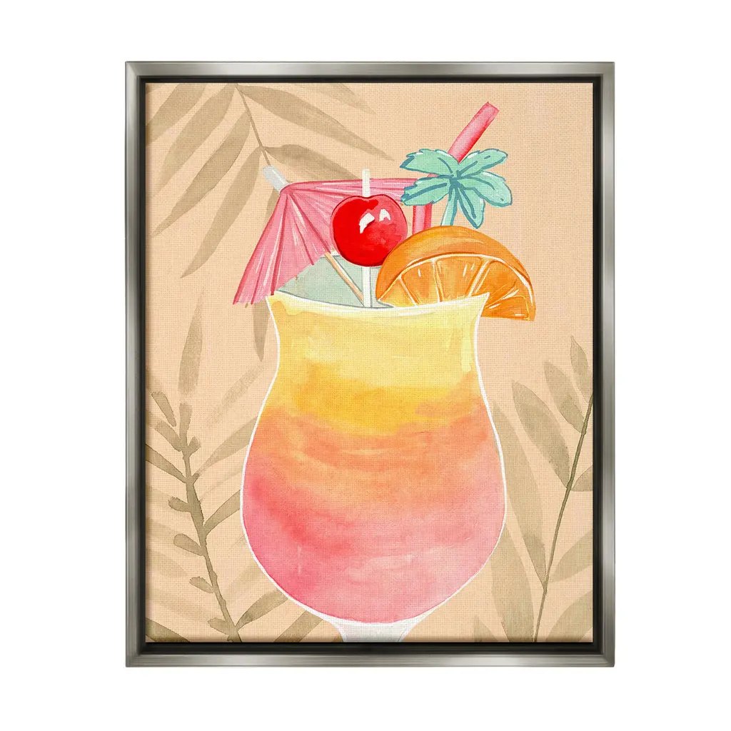 Elevate your home or office to the next level with Stupell Framed Floating Canvas Wall Art. Our premium hand-stretched canvas is mounted securely into a sturdy lightweight frame. The museum-style gap between the wrapped canvas and the box frame gives the illusion of floating artwork. Stupell Wall Art is made in the USA.Features: Dimensions: 17 x 1.7 x 21 Frame, 16 x 1.5 x 20 Canvas ArtFloating Frame Canvas Products are available in sizes 17"x21" and 25"x31". All Floating Frame Canvas Products have a 1.7" Depth.Wall Art is Ready to Hang with Hardware Free Hanging. No Installation required. For Easy Set Up Lean or Layer Artwork on Shelf or Against Wall. Artwork is Permently Fixed into the Frame.Our elevated 1.7" Thick Floating Frame is the perfect complement to our canvas style Wall Art. We use only the highest quality inks in house with industry leading printing solutions. Canvas is hand stretched over a durable wood foundation and then mounted securly into a Modern Box Frame. Made in the USA.Artwork Relates To: Alcohol, Beverage, Cocktail, Fruit, Plant, Citrus, Grapefruit, Liquor, Wine, Modern, TropicalDesign by Annie Warren