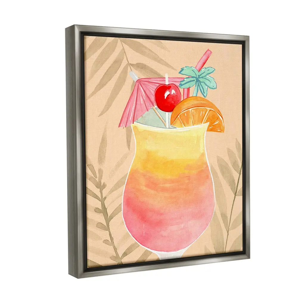 Elevate your home or office to the next level with Stupell Framed Floating Canvas Wall Art. Our premium hand-stretched canvas is mounted securely into a sturdy lightweight frame. The museum-style gap between the wrapped canvas and the box frame gives the illusion of floating artwork. Stupell Wall Art is made in the USA.Features: Dimensions: 17 x 1.7 x 21 Frame, 16 x 1.5 x 20 Canvas ArtFloating Frame Canvas Products are available in sizes 17"x21" and 25"x31". All Floating Frame Canvas Products have a 1.7" Depth.Wall Art is Ready to Hang with Hardware Free Hanging. No Installation required. For Easy Set Up Lean or Layer Artwork on Shelf or Against Wall. Artwork is Permently Fixed into the Frame.Our elevated 1.7" Thick Floating Frame is the perfect complement to our canvas style Wall Art. We use only the highest quality inks in house with industry leading printing solutions. Canvas is hand stretched over a durable wood foundation and then mounted securly into a Modern Box Frame. Made in the USA.Artwork Relates To: Alcohol, Beverage, Cocktail, Fruit, Plant, Citrus, Grapefruit, Liquor, Wine, Modern, TropicalDesign by Annie Warren