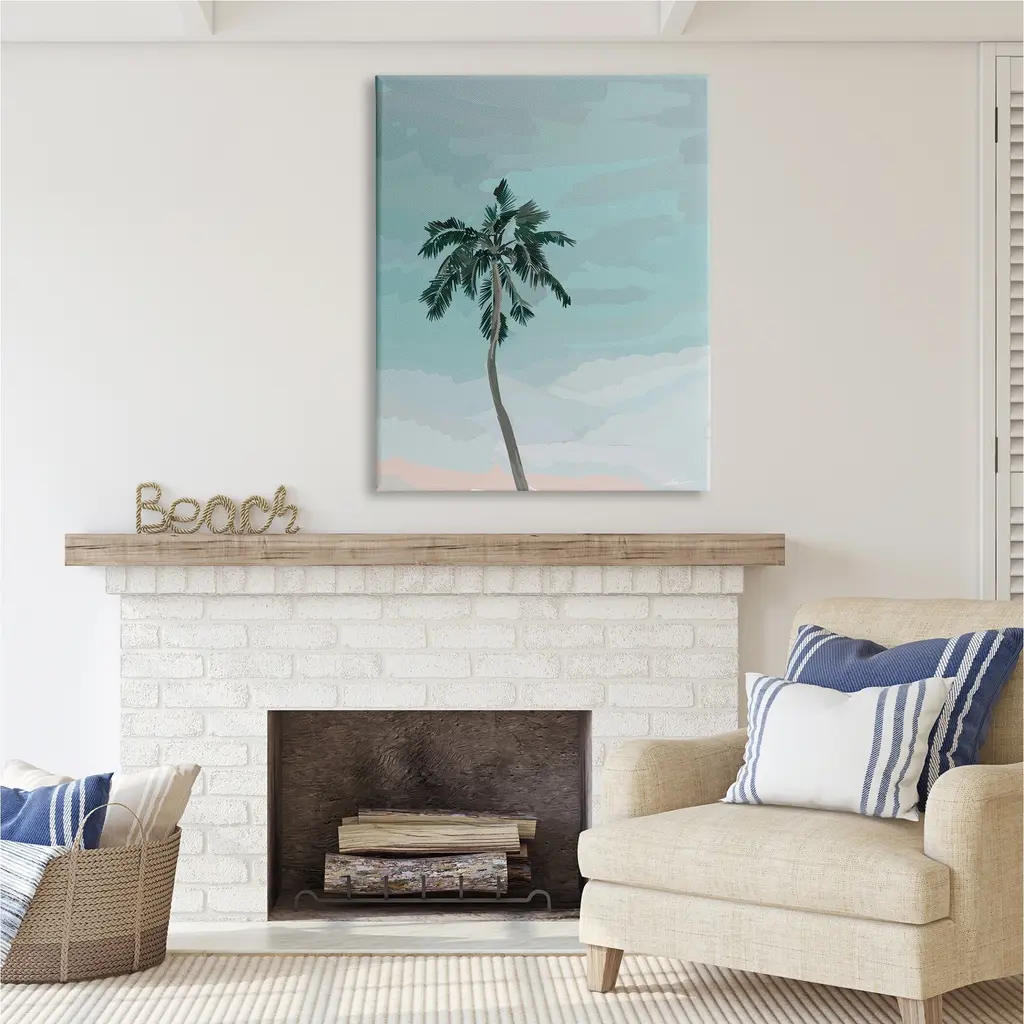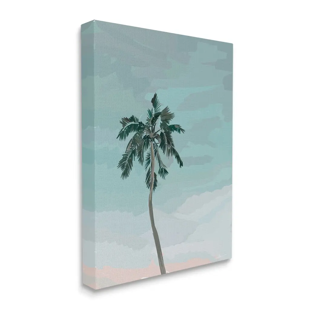 We create our stretched canvas to the highest standards. Using only the highest quality inks and canvas on Mimaki printers, we hand-cut and stretch each piece over a 1.5-inch thick wooden frame for hanging. As a result, the art comes ready to hang on the sturdy ledge with no installation required. Stupell Wall Art is made in the USA.Features: Dimensions: 16 x 1.5 x 20 InchesStretched Canvas Sizes Include Standard: 16 x 1.5 x 20 Large: 20 x 1.5 x 30 X-Large: 30 x 1.5 x 40 Oversized: 36 x 1.5 x 48Wall Art is Ready to Hang with Hardware Free Hanging. No installation required. For Easy Set Up Lean or Layer Artwork on Shelf or Against Wall.Our stretched canvas is created with the highest standards. We use only the highest quality inks and canvas on our in house Mimaki printers, and then hand cut and stretch each piece over a 1.5 inch thick wooden frame for hanging. Made In USA.Artwork Relates To: Palm Tree, Tropical, SkyDesign by Amelia Noyes