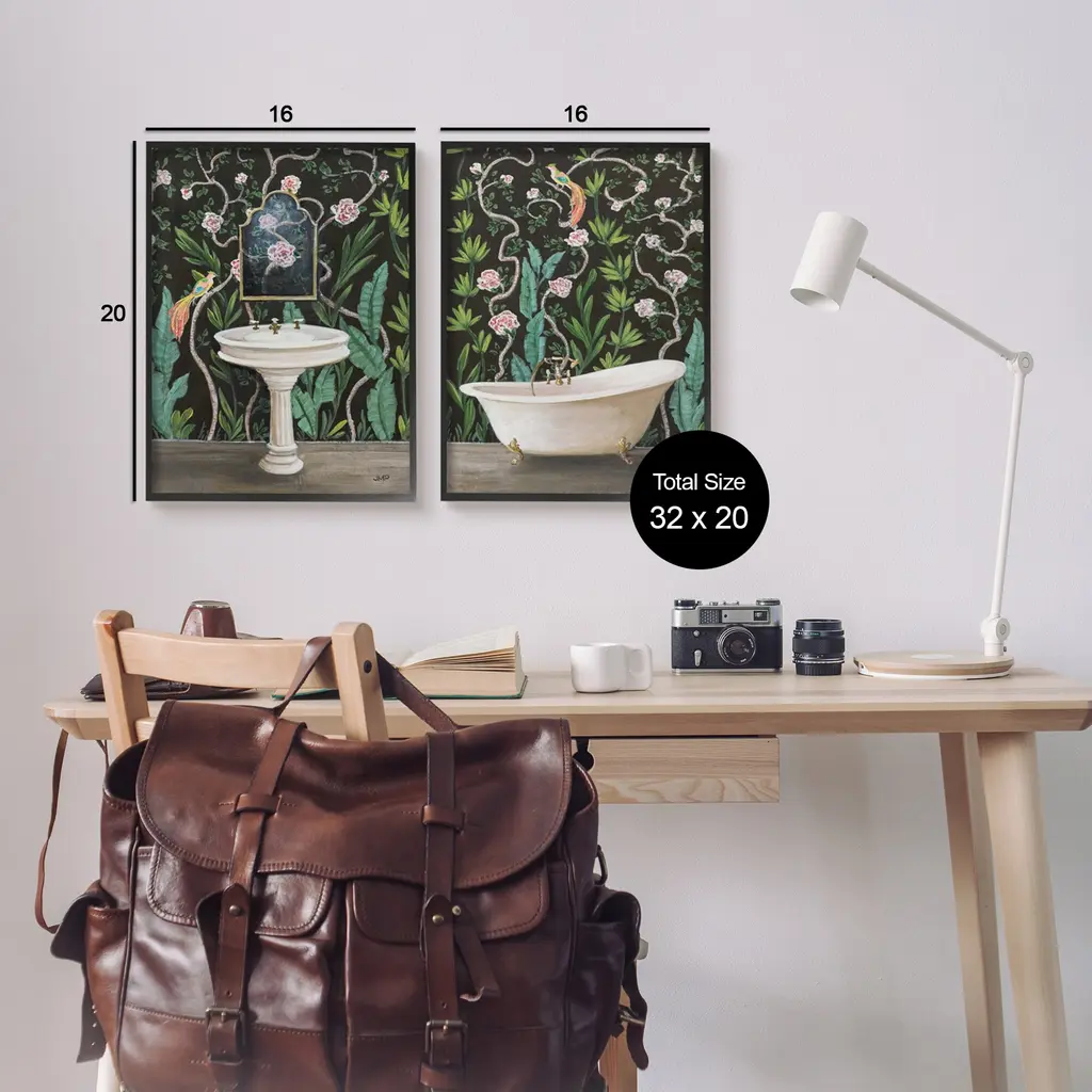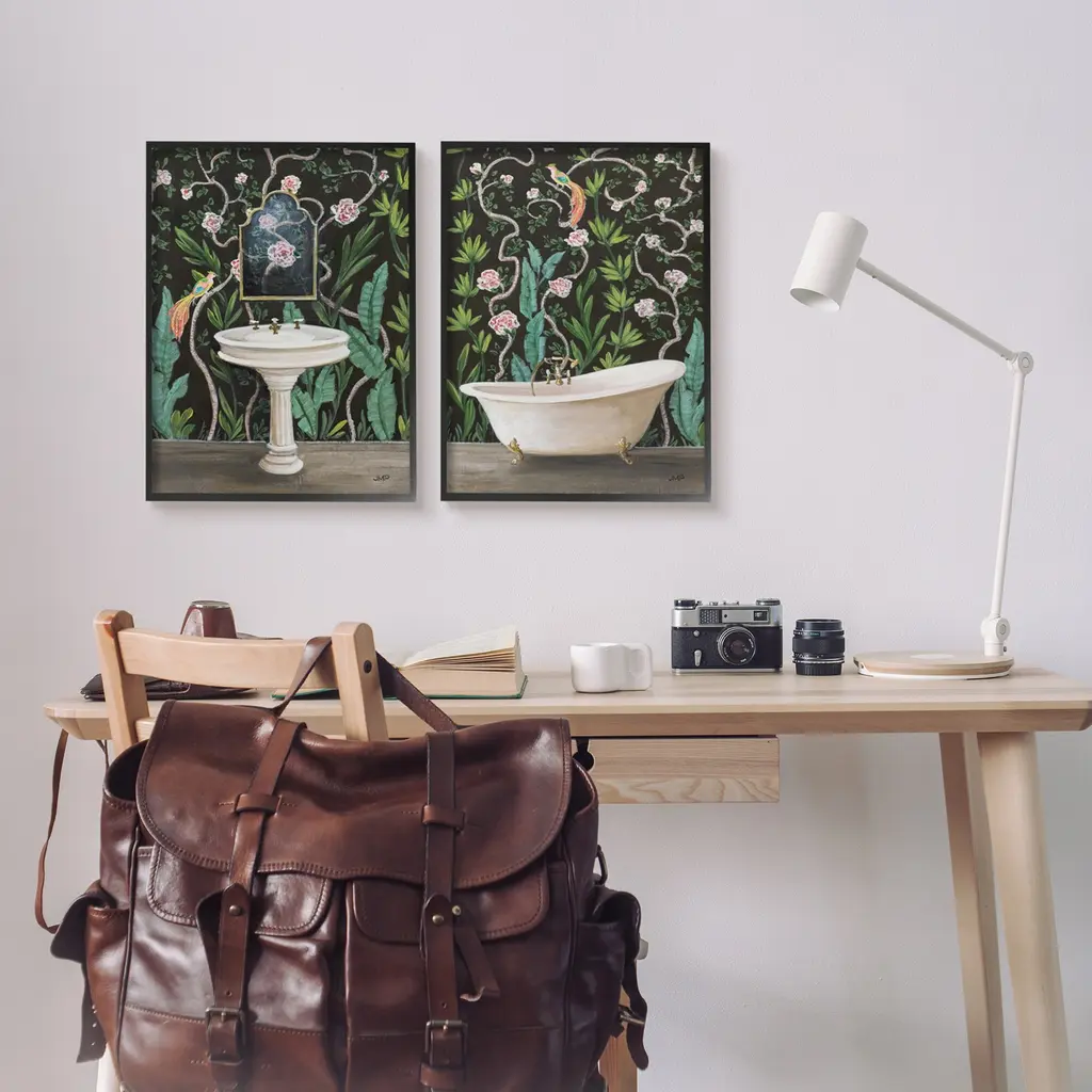 Fill any space in your home or office with our Framed Wall Art Sets. Our framed artwork is securely mounted into a 1.5-inch thick wood grain frame and ready to hang. Frames are available in three alluring styles: black, gray farmhouse and white. Stupell Wall Art is made in the USA.Features: Dimensions: 2 Piece Set, Each Panel is 11 x 1.5 x 14 FramedFramed Giclee Set Sizes Include Standard: 2pc, Each is 11 x 1.5 x 14 Large: 2pc, Each is 16 x 1.5 x 20 Oversized: 2pc, Each is 24 x 1.5 x 30Wall Art is Ready to Hang with Hardware Free Hanging. No installation required. For Easy Set Up Lean or Layer Artwork on Shelf or Against Wall.Curated Wall Art Sets make it easy for you complete the theme for any room. Our giclée prints are carefully mounted on a durable MDF backing, and then perfectly finished in a 1.5 inch thick woodgrain frame. Mounted frame colors include black, gray farmhouse and white. Made In USA.Artwork Relates To: Bathing, Bathtub, Tub, Sink, Sink Faucet, Painting, Bathroom, BirdDesign by Julia Purinton