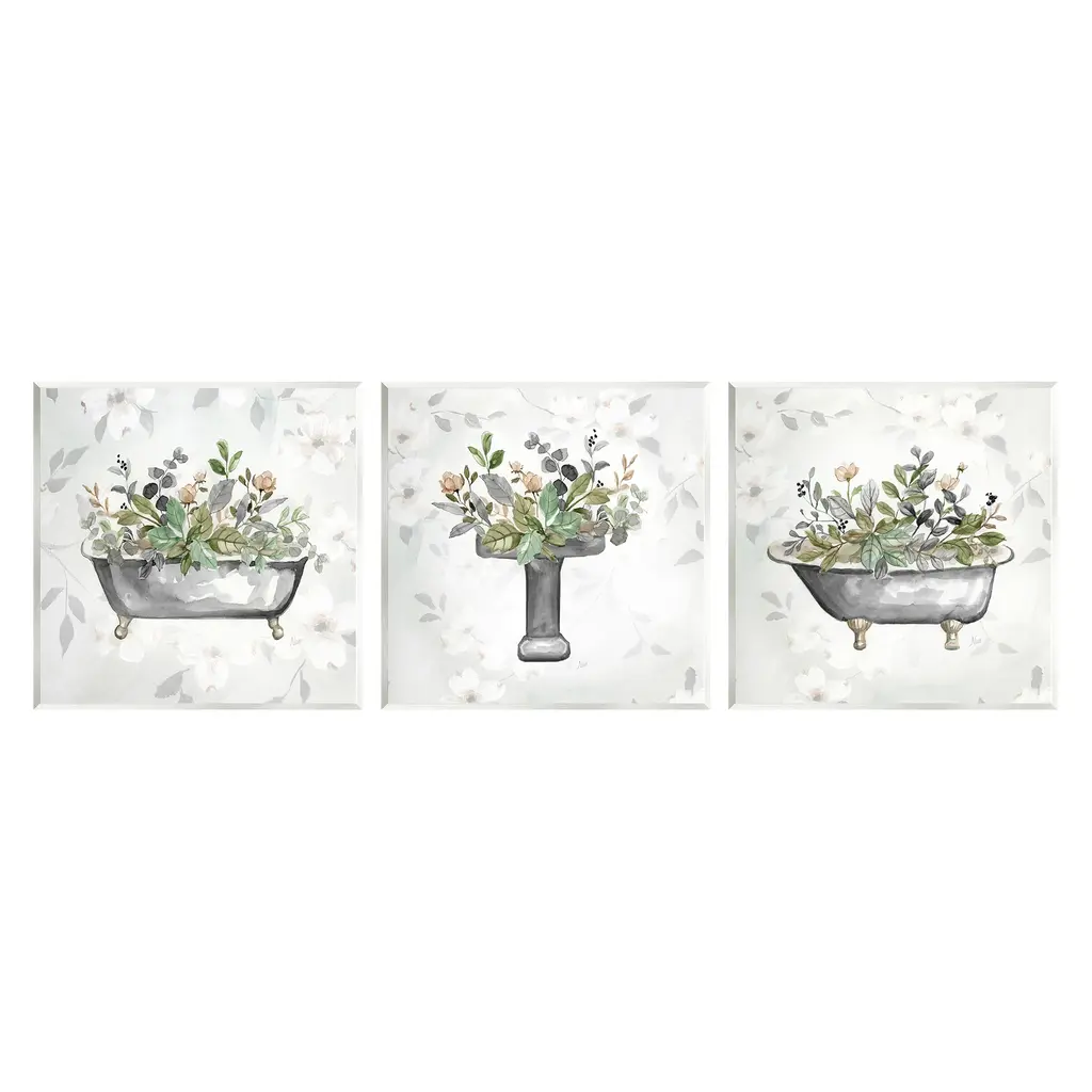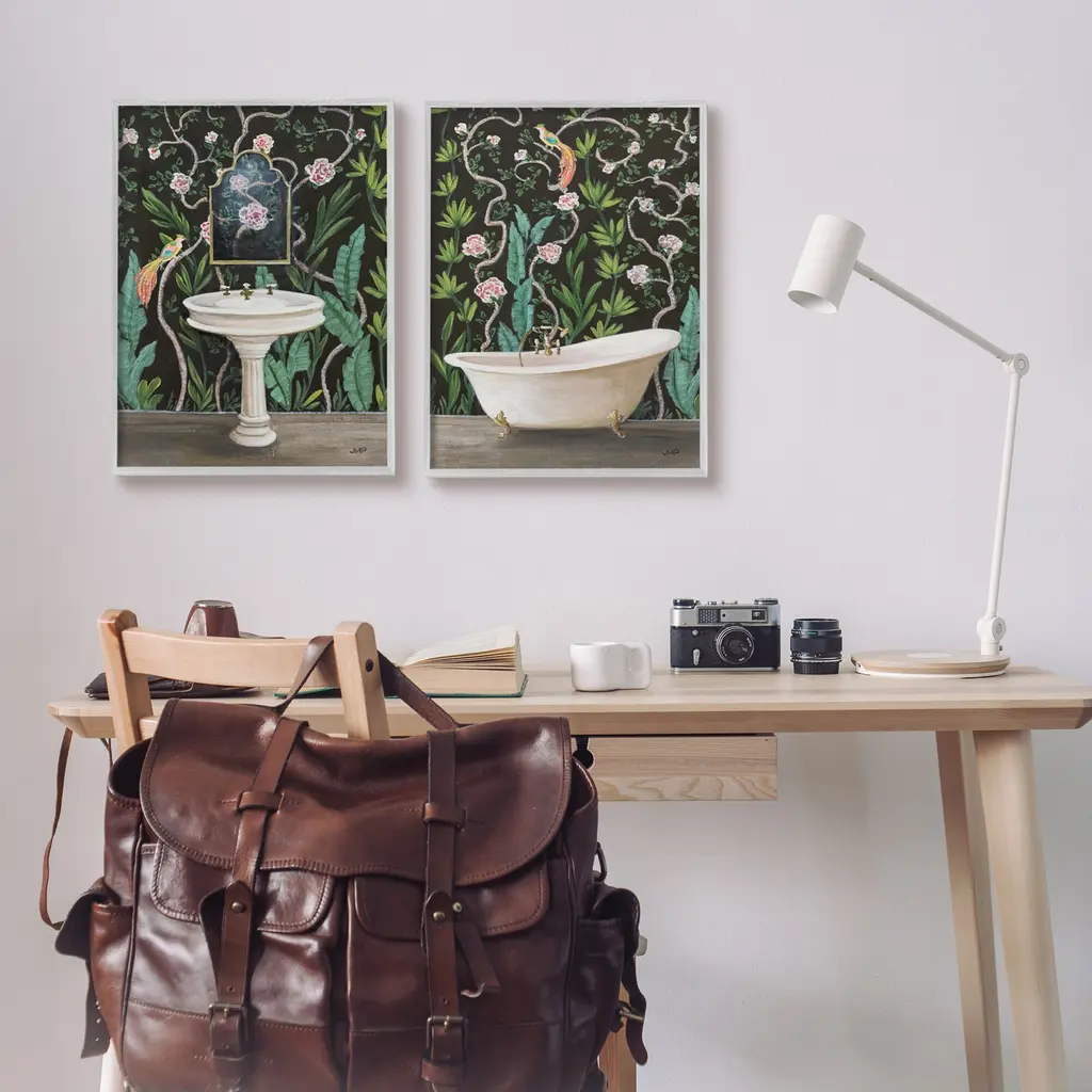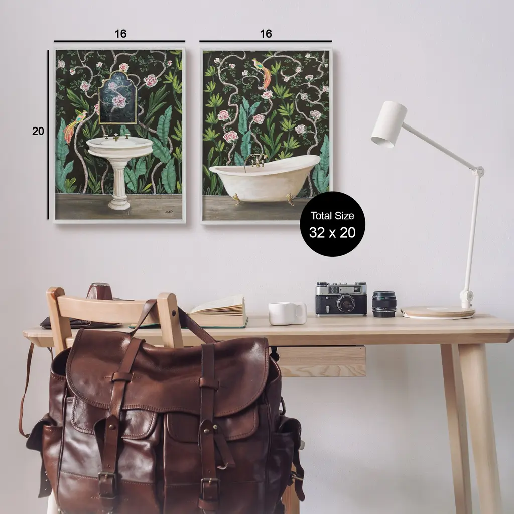 Fill any space in your home or office with our Framed Wall Art Sets. Our framed artwork is securely mounted into a 1.5-inch thick wood grain frame and ready to hang. Frames are available in three alluring styles: black, gray farmhouse and white. Stupell Wall Art is made in the USA.Features: Dimensions: 2 Piece Set, Each Panel is 11 x 1.5 x 14 FramedFramed Giclee Set Sizes Include Standard: 2pc, Each is 11 x 1.5 x 14 Large: 2pc, Each is 16 x 1.5 x 20 Oversized: 2pc, Each is 24 x 1.5 x 30Wall Art is Ready to Hang with Hardware Free Hanging. No installation required. For Easy Set Up Lean or Layer Artwork on Shelf or Against Wall.Curated Wall Art Sets make it easy for you complete the theme for any room. Our giclée prints are carefully mounted on a durable MDF backing, and then perfectly finished in a 1.5 inch thick woodgrain frame. Mounted frame colors include black, gray farmhouse and white. Made In USA.Artwork Relates To: Bathing, Bathtub, Tub, Sink, Sink Faucet, Painting, Bathroom, BirdDesign by Julia Purinton