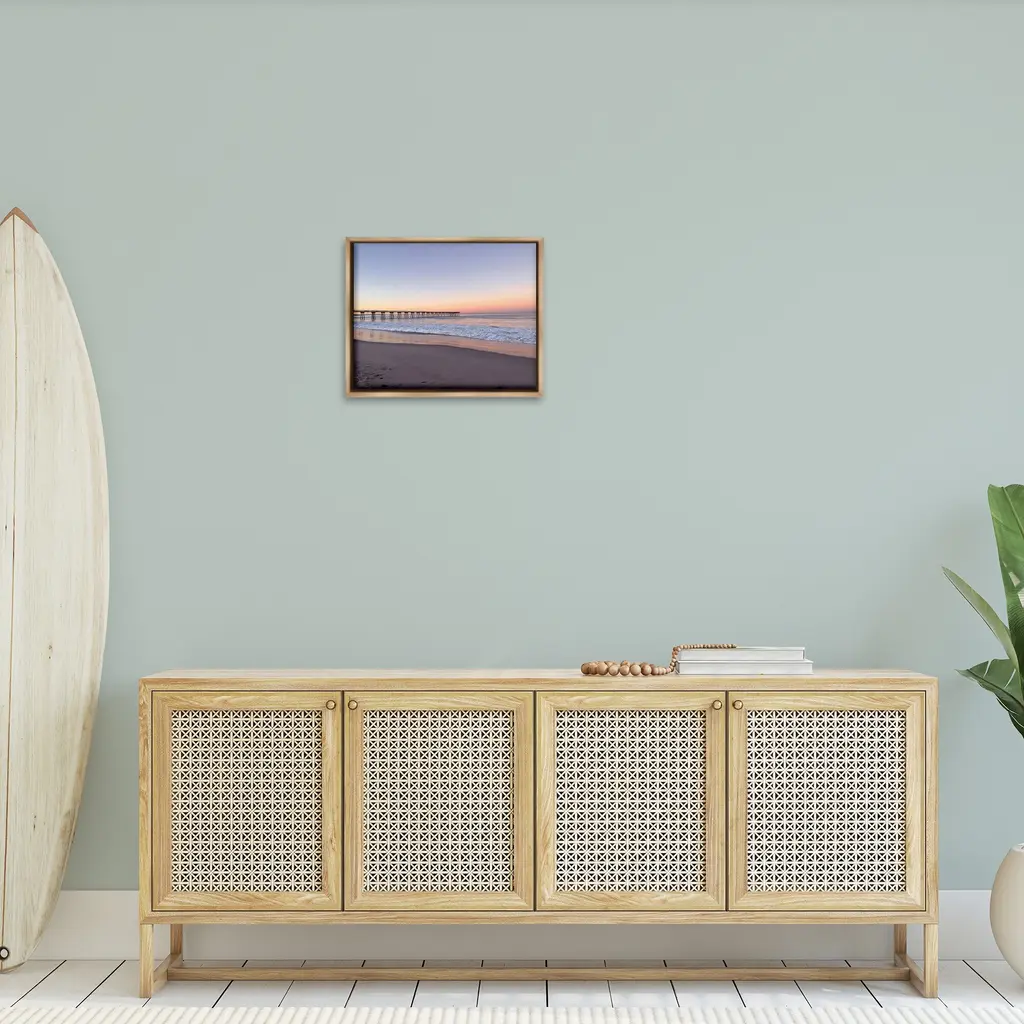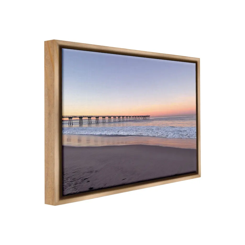 Elevate your home or office to the next level with Stupell Framed Floating Canvas Wall Art. Our premium hand-stretched canvas is mounted securely into a sturdy lightweight frame. The museum-style gap between the wrapped canvas and the box frame gives the illusion of floating artwork. Stupell Wall Art is made in the USA.Features: Dimensions: 21 x 1.7 x 17 Frame, 20 x 1.5 x 16 Canvas ArtFloating Frame Canvas Products are available in sizes 21"x17" and 31"x25". All Floating Frame Canvas Products have a 1.7" Depth.Wall Art is Ready to Hang with Hardware Free Hanging. No Installation required. For Easy Set Up Lean or Layer Artwork on Shelf or Against Wall. Artwork is Permently Fixed into the Frame.Our elevated 1.7" Thick Floating Frame is the perfect complement to our canvas style Wall Art. We use only the highest quality inks in house with industry leading printing solutions. Canvas is hand stretched over a durable wood foundation and then mounted securly into a Modern Box Frame. Made in the USA.Artwork Relates To: Water, Waterfront, Horizon, Nature, Sky, Pier, Beach, Coast, Sea, Shoreline, Scenery, Sunset, SunriseDesign by Kathy Manfield