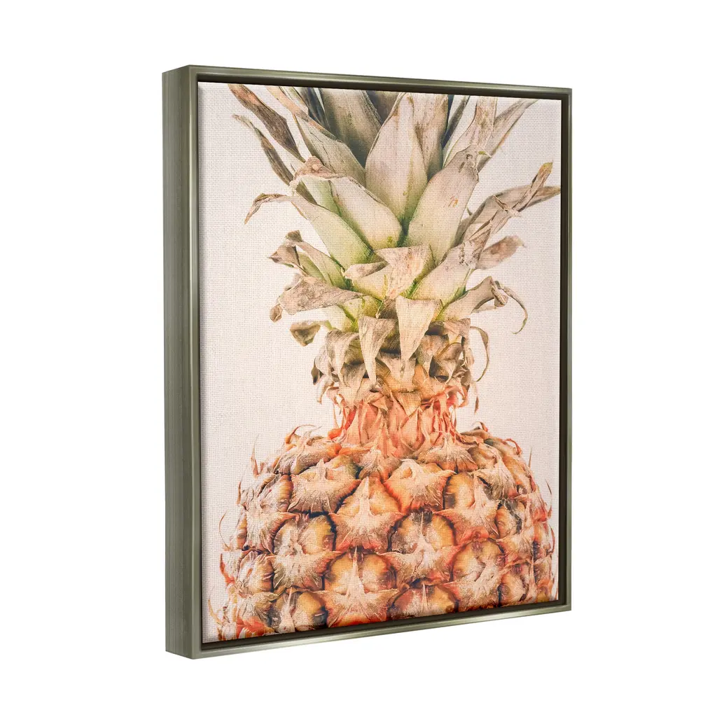 Elevate your home or office to the next level with Stupell Framed Floating Canvas Wall Art. Our premium hand-stretched canvas is mounted securely into a sturdy lightweight frame. The museum-style gap between the wrapped canvas and the box frame gives the illusion of floating artwork. Stupell Wall Art is made in the USA.Features: Dimensions: 17 x 1.7 x 21 Frame, 16 x 1.5 x 20 Canvas ArtFloating Frame Sizes Include Standard: 17 x 1.7 x 21 Oversized: 25 x 1.7 x 31Wall Art is Ready to Hang - No Installation or Hardware Needed. For Easy Set Up Lean or Layer Artwork on Shelf or Against Wall.Our elevated 1.7" Thick Floating Frame is the perfect complement to our canvas style Wall Art. We use only the highest quality inks in house with industry leading printing solutions. Canvas is hand stretched over a durable wood foundation and then mounted securly into a Modern Box Frame. Made in the USA.Artwork Relates To: Food, Fruit, Plant, Produce, Pineapple, PhotographyDesign by Erin Marie
