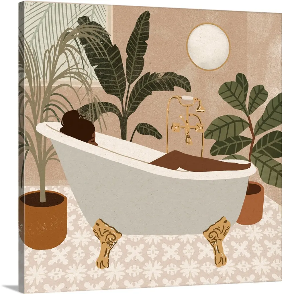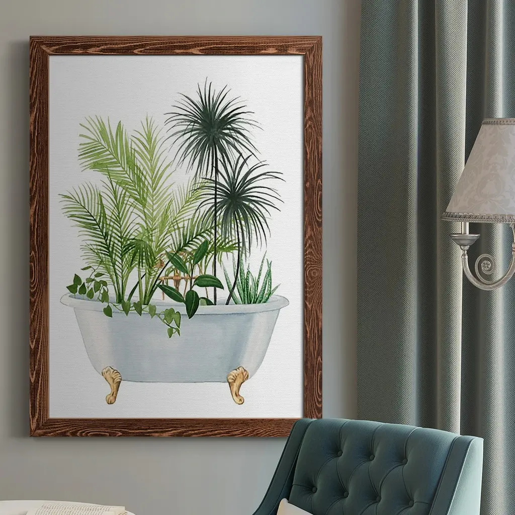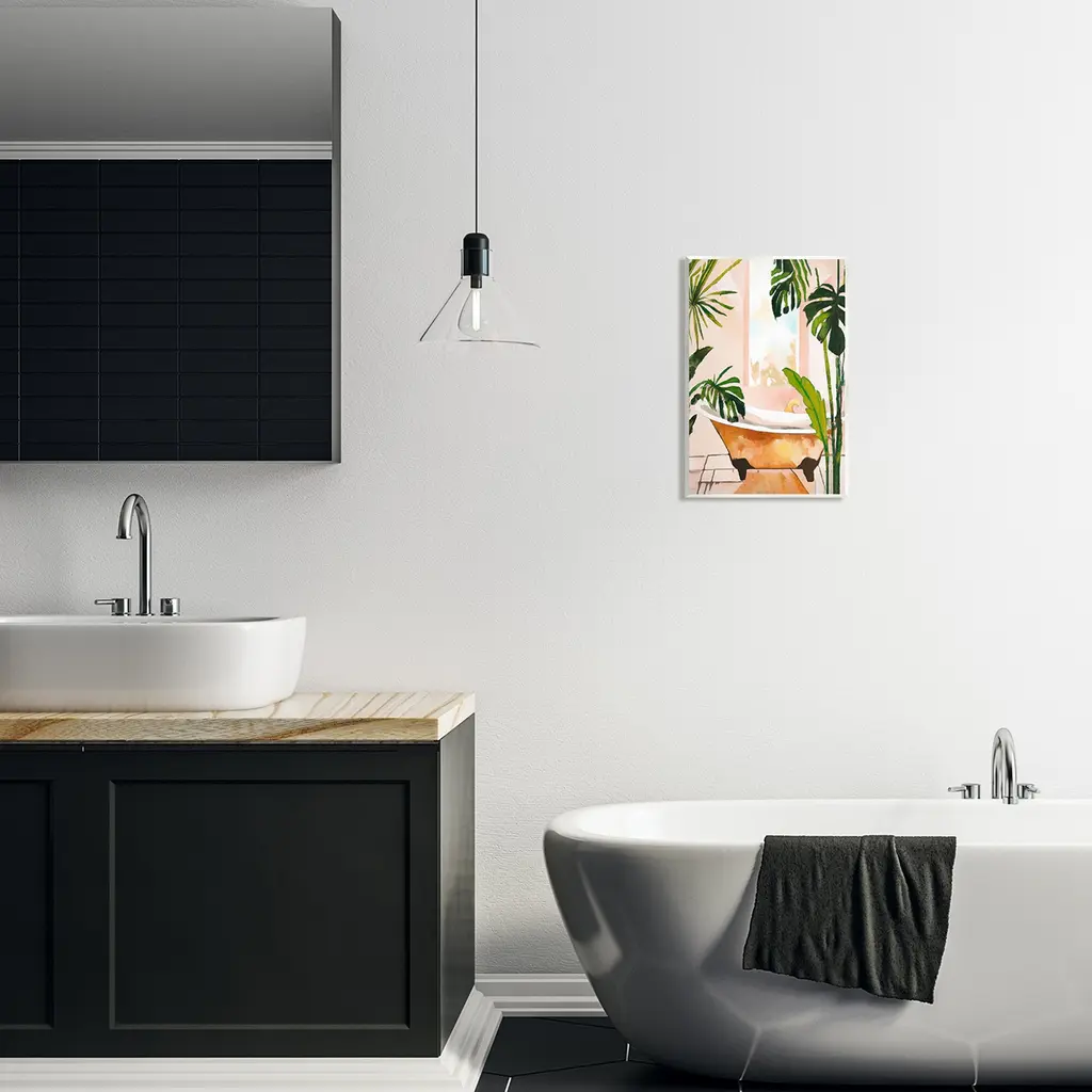 Our wall plaques start as high-quality lithograph prints mounted on durable 0.5-inch thick MDF wood. Each piece is hand finished and comes with a fresh layer of white foil on the sides to give it a crisp, clean look. Plaques arrive ready to hang without installation and come with removable plastic corners to keep them from damage in transit. Wall Art is made in the USA.Features: Dimensions: 10 x 0.5 x 15 InchesWall Plaque Sizes Include Standard: 10 x 0.5 x 15 Oversized: 13 x 0.5 x 19Wall Art is Ready to Hang with Hardware Free Hanging. No installation required. For Easy Set Up Lean or Layer Artwork on Shelf or Against Wall.All of our wall plaques start off as high quality lithograph prints that are then mounted on durable 0.5 inch thick MDF wood. Each piece is hand finished and comes with a fresh layer of foil on the sides to give it a crisp clean look. Made In USA.Artwork Relates To: Tub, Plant, Potted Plant, Bathing, Bathtub, Bathroom, WindowDesign by Ramona Murdock