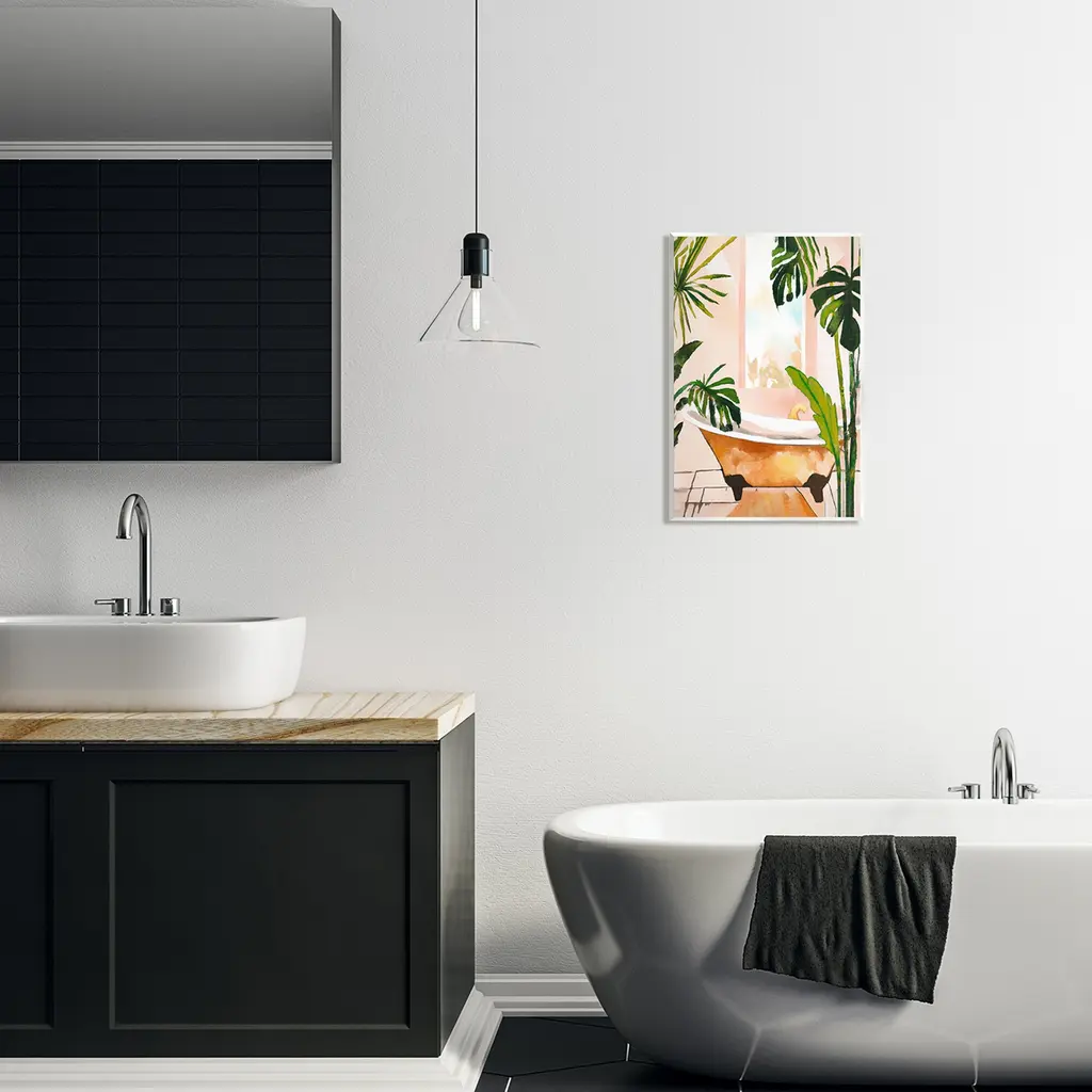 Our wall plaques start as high-quality lithograph prints mounted on durable 0.5-inch thick MDF wood. Each piece is hand finished and comes with a fresh layer of white foil on the sides to give it a crisp, clean look. Plaques arrive ready to hang without installation and come with removable plastic corners to keep them from damage in transit. Wall Art is made in the USA.Features: Dimensions: 10 x 0.5 x 15 InchesWall Plaque Sizes Include Standard: 10 x 0.5 x 15 Oversized: 13 x 0.5 x 19Wall Art is Ready to Hang with Hardware Free Hanging. No installation required. For Easy Set Up Lean or Layer Artwork on Shelf or Against Wall.All of our wall plaques start off as high quality lithograph prints that are then mounted on durable 0.5 inch thick MDF wood. Each piece is hand finished and comes with a fresh layer of foil on the sides to give it a crisp clean look. Made In USA.Artwork Relates To: Tub, Plant, Potted Plant, Bathing, Bathtub, Bathroom, WindowDesign by Ramona Murdock