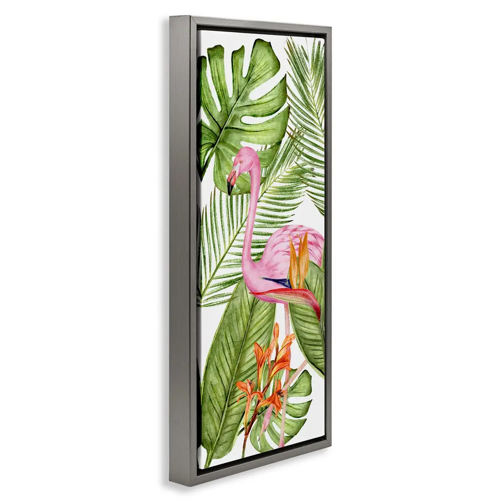 Elevate your home or office to the next level with Stupell Framed Floating Canvas Wall Art. Our premium hand-stretched canvas is mounted securely into a sturdy lightweight frame. The museum-style gap between the wrapped canvas and the box frame gives the illusion of floating artwork. Stupell Wall Art is made in the USA.Features: Dimensions: 11 x 1.7 x 25 Frame, 10 x 1.5 x 24 Canvas ArtFloating Frame Canvas Products are available in sizes 11"x25" and 14"x31". All Floating Frame Canvas Products have a 1.7" Depth.Wall Art is Ready to Hang with Hardware Free Hanging. No Installation required. For Easy Set Up Lean or Layer Artwork on Shelf or Against Wall. Artwork is Permently Fixed into the Frame.Our elevated 1.7" Thick Floating Frame is the perfect complement to our canvas style Wall Art. We use only the highest quality inks in house with industry leading printing solutions. Canvas is hand stretched over a durable wood foundation and then mounted securly into a Modern Box Frame. Made in the USA.Artwork Relates To: Plant, Animal, Bird, Flamingo, Leaf, Jungle, Nature, TropicalDesign by Kim Allen