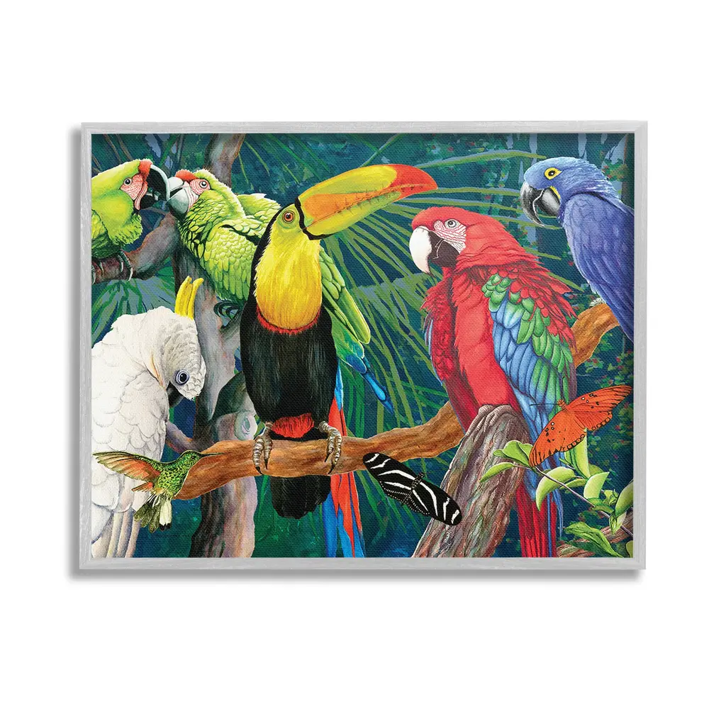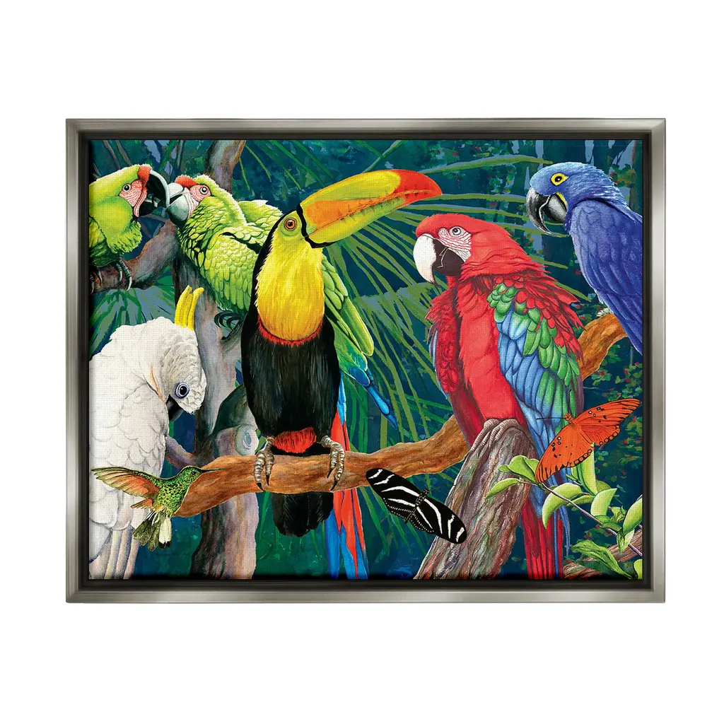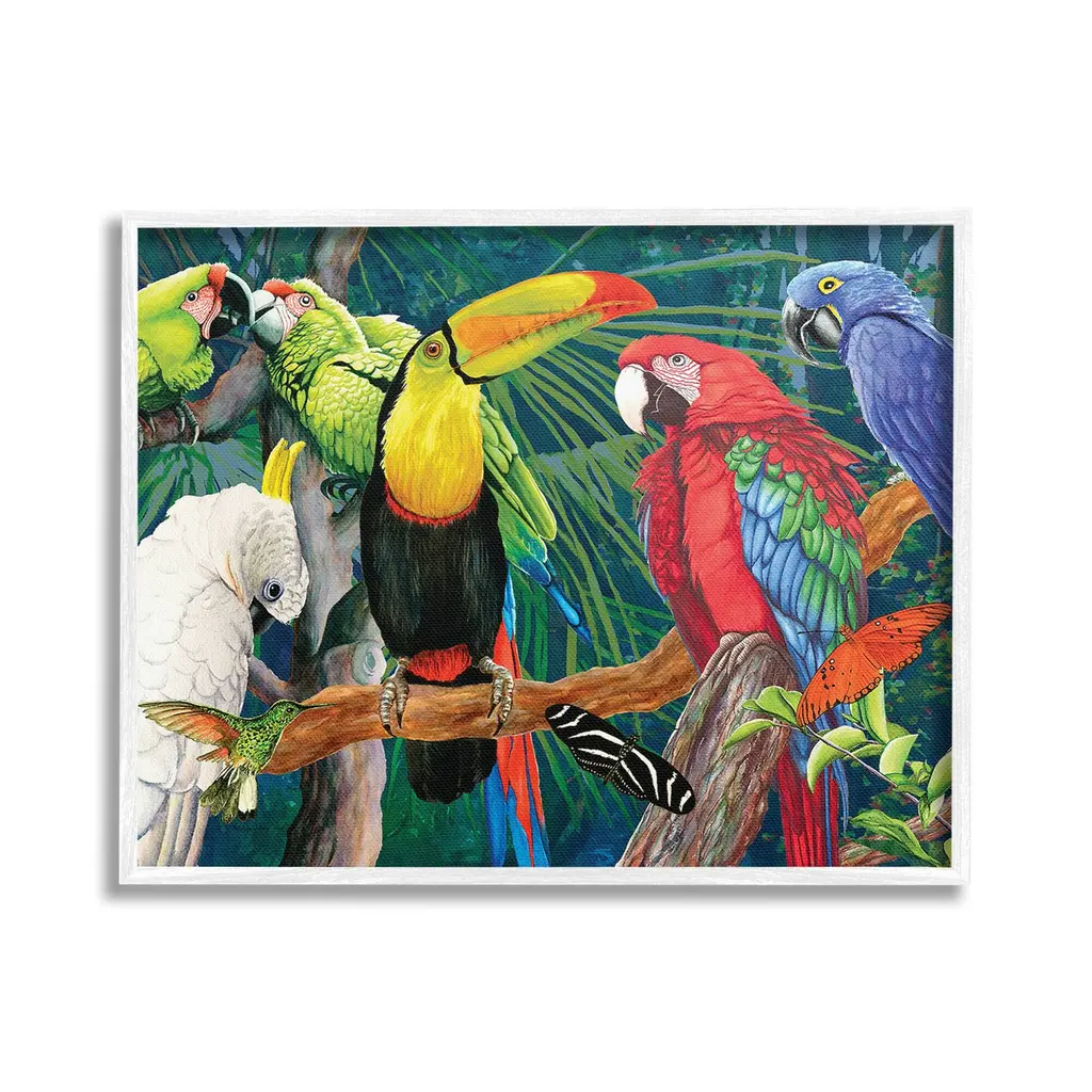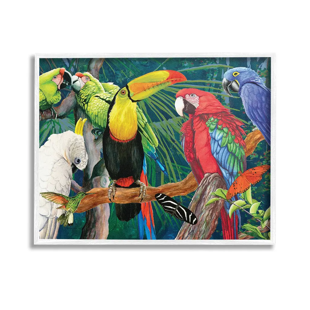 Elevate your home or office to the next level with Stupell Framed Floating Canvas Wall Art. Our premium hand-stretched canvas is mounted securely into a sturdy lightweight frame. The museum-style gap between the wrapped canvas and the box frame gives the illusion of floating artwork. Stupell Wall Art is made in the USA.Features: Dimensions: 21 x 1.7 x 17 Frame, 20 x 1.5 x 16 Canvas ArtFloating Frame Canvas Products are available in sizes 21"x17" and 31"x25". All Floating Frame Canvas Products have a 1.7" Depth.Wall Art is Ready to Hang with Hardware Free Hanging. No Installation required. For Easy Set Up Lean or Layer Artwork on Shelf or Against Wall. Artwork is Permently Fixed into the Frame.Our elevated 1.7" Thick Floating Frame is the perfect complement to our canvas style Wall Art. We use only the highest quality inks in house with industry leading printing solutions. Canvas is hand stretched over a durable wood foundation and then mounted securly into a Modern Box Frame. Made in the USA.Artwork Relates To: Animal, Beak, Bird, Plant, Vegetation, Jungle, Nature, Parrot, Rainforest, Tree, Painting, ModernDesign by Christine Reichow