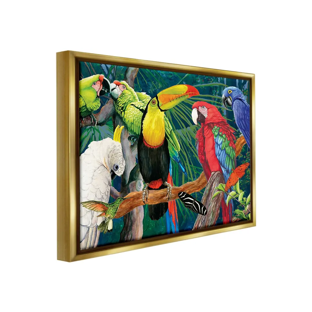 Stupell Tropical Rainforest Birds Framed Floater Canvas Wall Art Design By Christine Reichow - 21 X 17 - Gold