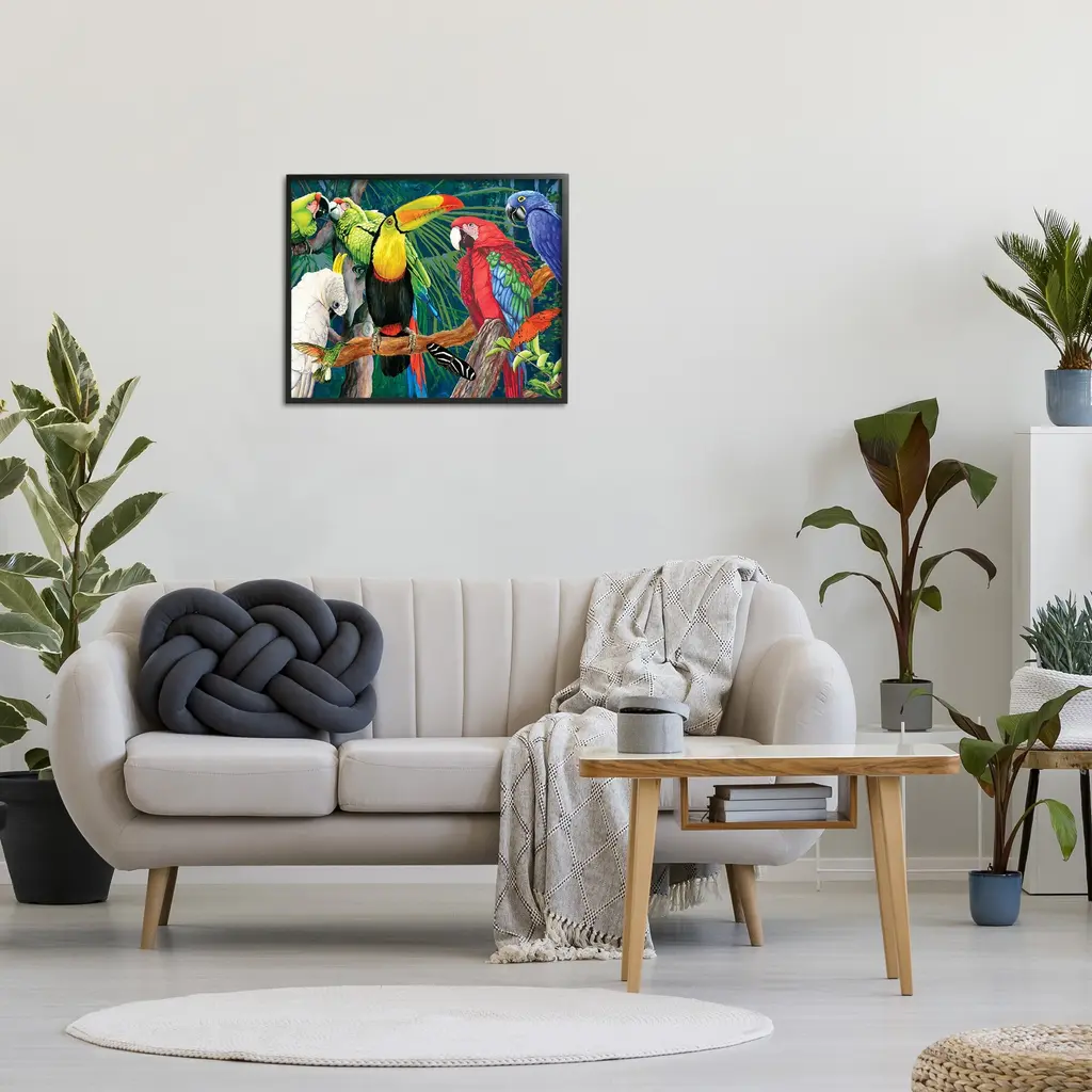 Add dimension to any room with our textured Framed Giclee Artwork. Our framed artwork is securely mounted into a 1.5-inch thick wood grain frame and ready to hang. Frames are available in three alluring styles: black, gray farmhouse and white. In addition, you should check out our oversized options if you want a statement piece. Stupell Wall Art is made in the USA.Features: Dimensions: 14 x 1.5 x 11 FramedFramed Giclee Products are available in the sizes 14"x11", 20"x16" or 30"x24". All Framed Giclee Products have a 1.5" Depth. Wall Art is Ready to Hang with Hardware Free Hanging. No installation required. For Easy Set Up Lean or Layer Artwork on Shelf or Against Wall.Our giclée prints are carefully mounted on a durable MDF backing, and then perfectly finished in a 1.5 inch thick woodgrain frame. Mounted frame colors include black, gray farmhouse and white. Made In USA.Artwork Relates To: Animal, Beak, Bird, Plant, Vegetation, Jungle, Nature, Parrot, Rainforest, Tree, Painting, ModernDesign by Christine Reichow