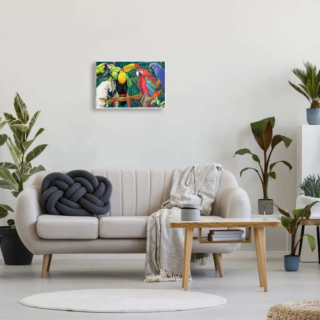 Our wall plaques start as high-quality lithograph prints mounted on durable 0.5-inch thick MDF wood. Each piece is hand finished and comes with a fresh layer of white foil on the sides to give it a crisp, clean look. Plaques arrive ready to hang without installation and come with removable plastic corners to keep them from damage in transit. Stupell Wall Art is made in the USA.Features: Dimensions: 15 x 0.5 x 10 InchesWall Plaque Product Sizes Include 15"x10" and 19"x13". All wall plaque products have a 0.5" Depth. Wall Art is Ready to Hang with Hardware Free Hanging. No installation required. For Easy Set Up Lean or Layer Artwork on Shelf or Against Wall.All of our wall plaques start off as high quality lithograph prints that are then mounted on durable 0.5 inch thick MDF wood. Each piece is hand finished and comes with a fresh layer of foil on the sides to give it a crisp clean look. Made In USA.Artwork Relates To: Animal, Beak, Bird, Plant, Vegetation, Jungle, Nature, Parrot, Rainforest, Tree, Painting, ModernDesign by Christine Reichow