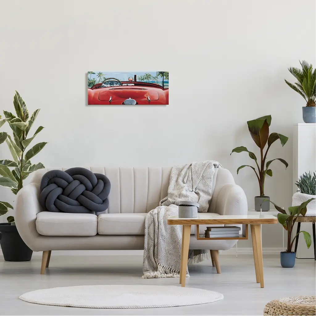 We create our stretched canvas to the highest standards. Using only the highest quality inks and canvas on Mimaki printers, we hand-cut and stretch each piece over a 1.5-inch thick wooden frame for hanging. As a result, the art comes ready to hang on the sturdy ledge with no installation required. Stupell Wall Art is made in the USA.Features: Dimensions: 24 x 1.5 x 10 InchesStretched Canvas Sizes Include Standard: 24 x 1.5 x 10 Large: 30 x 1.5 x 13 X-Large: 40 x 1.5 x 17 Oversized: 48 x 1.5 x 20Wall Art is Ready to Hang with Hardware Free Hanging. No installation required. For Easy Set Up Lean or Layer Artwork on Shelf or Against Wall.Our stretched canvas is created with the highest standards. We use only the highest quality inks and canvas on our in house Mimaki printers, and then hand cut and stretch each piece over a 1.5 inch thick wooden frame for hanging. Made In USA.Artwork Relates To: Machine, Wheel, Tire, Car, Transportation, Vehicle, Sports Car, Red, TropicalDesign by Francis Brook