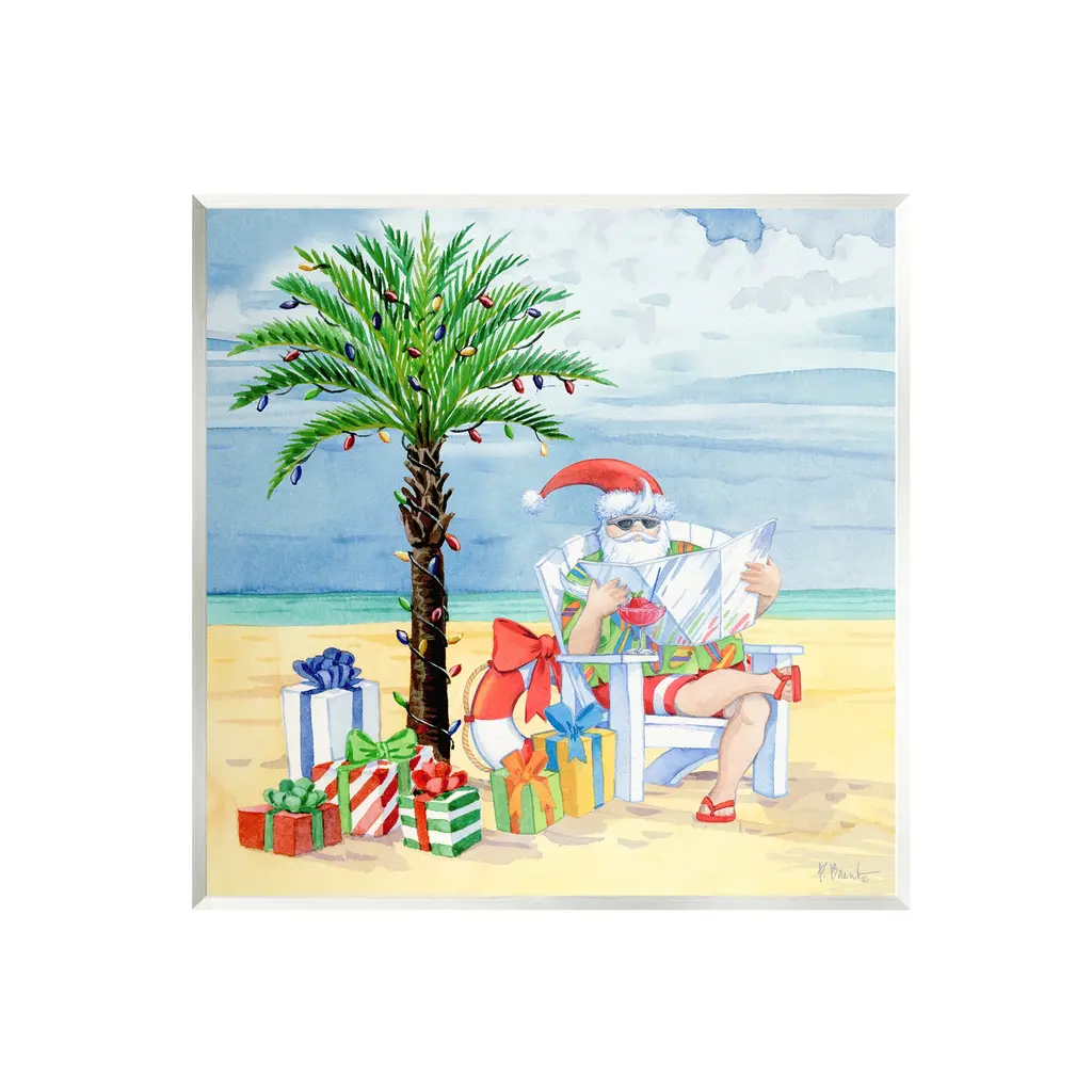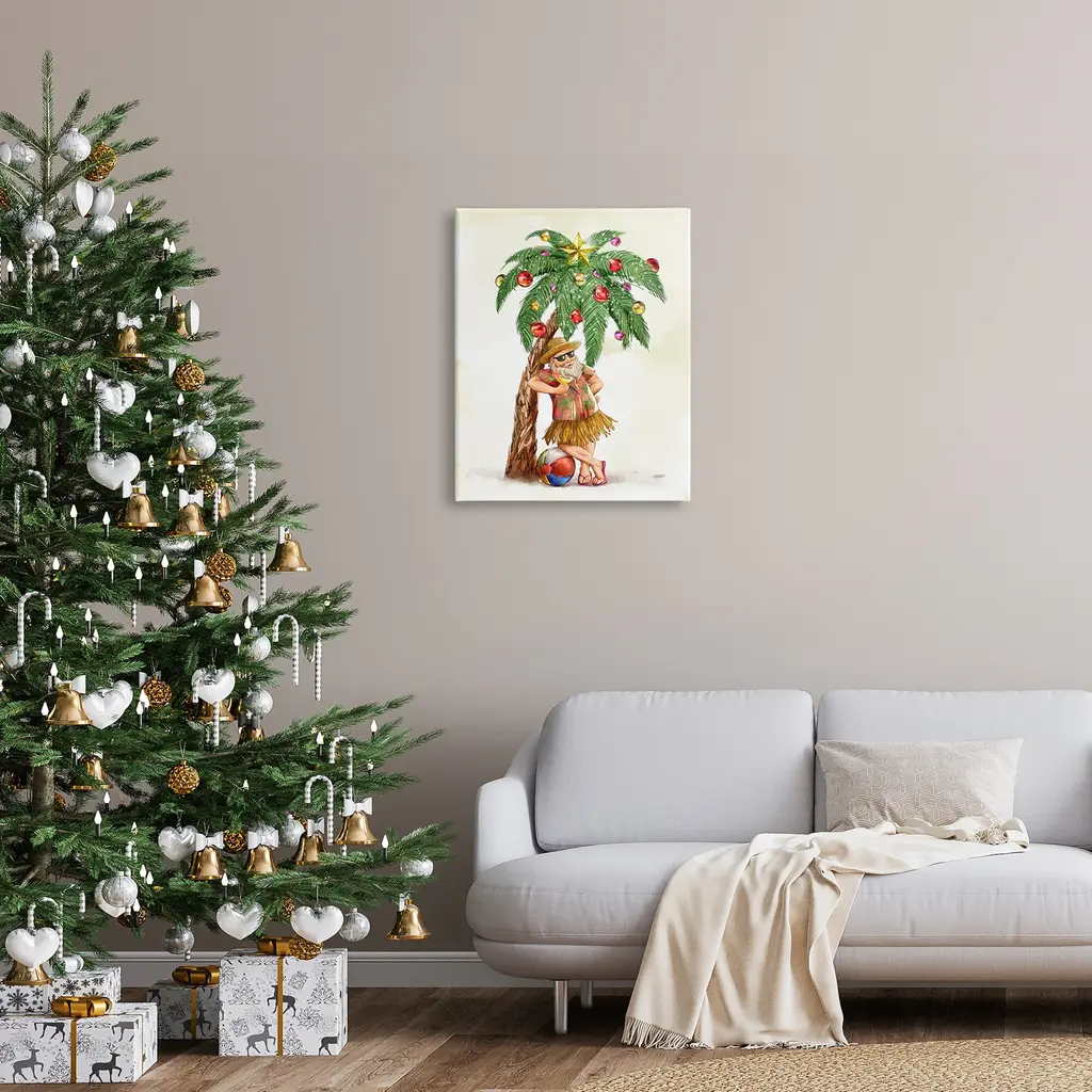 Stupell Tropical Santa Claus Lounging Palm Tree Ornaments Canvas Wall Art - Multi-Color - 24 X 30