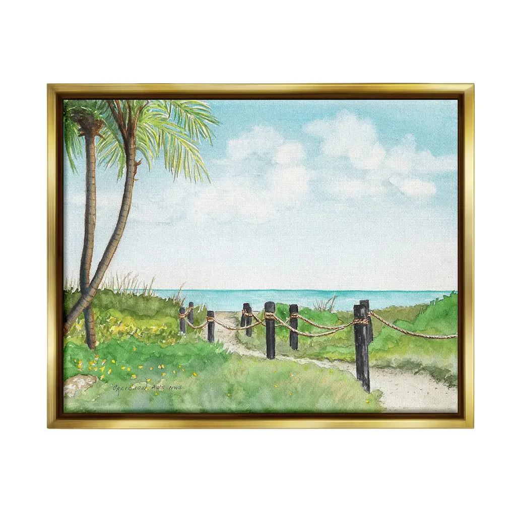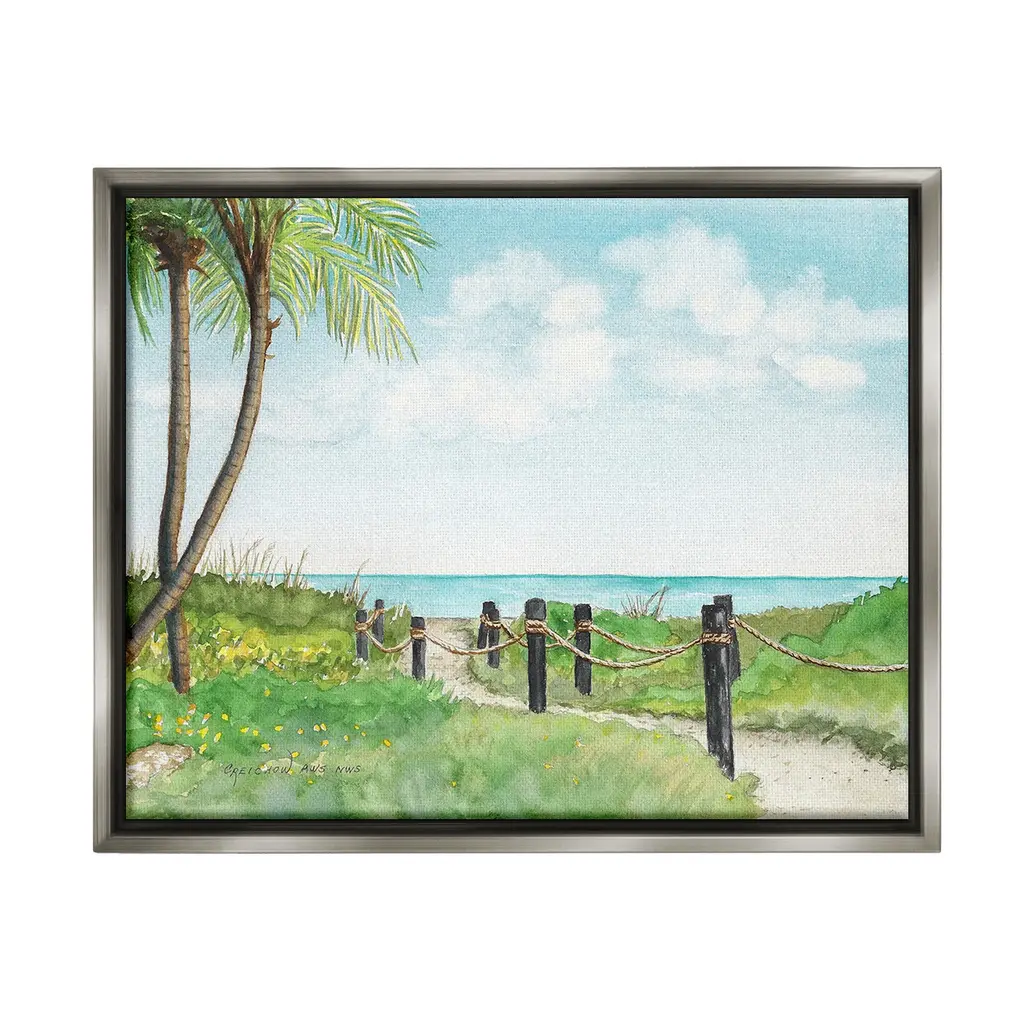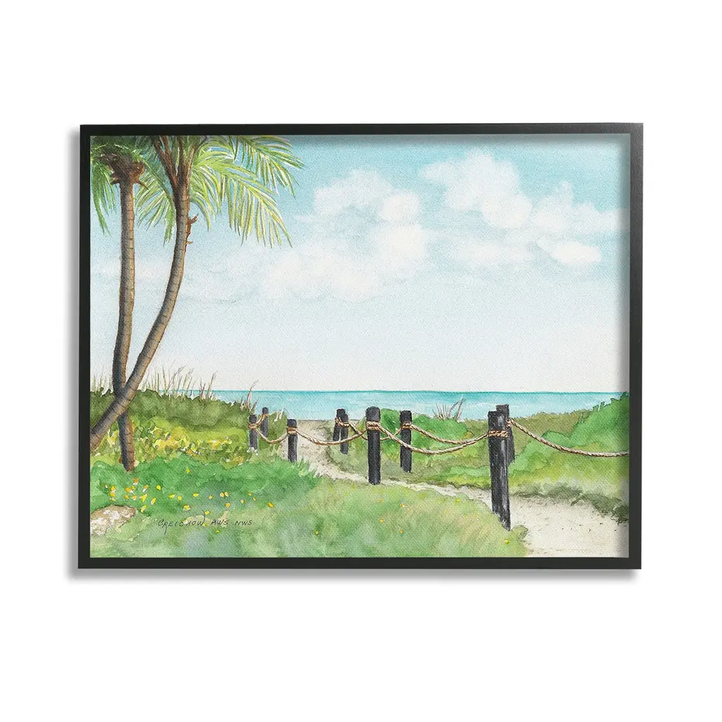 Add dimension to any room with our textured Framed Giclee Artwork. Our framed artwork is securely mounted into a 1.5-inch thick wood grain frame and ready to hang. Frames are available in three alluring styles: black, gray farmhouse and white. In addition, you should check out our oversized options if you want a statement piece. Stupell Wall Art is made in the USA.Features: Dimensions: 14 x 1.5 x 11 FramedFramed Giclee Products are available in the sizes 14"x11", 20"x16" or 30"x24". All Framed Giclee Products have a 1.5" Depth. Wall Art is Ready to Hang with Hardware Free Hanging. No installation required. For Easy Set Up Lean or Layer Artwork on Shelf or Against Wall.Our giclée prints are carefully mounted on a durable MDF backing, and then perfectly finished in a 1.5 inch thick woodgrain frame. Mounted frame colors include black, gray farmhouse and white. Made In USA.Artwork Relates To: Summer, Nature, Scenery, Sea, Water, Shoreline, Path, Beach, Coast, Palm Tree, TropicalDesign by Christine Reichow