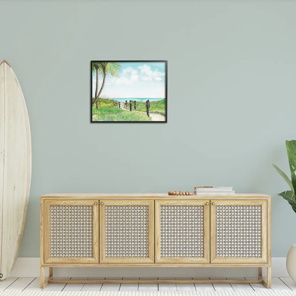 Add dimension to any room with our textured Framed Giclee Artwork. Our framed artwork is securely mounted into a 1.5-inch thick wood grain frame and ready to hang. Frames are available in three alluring styles: black, gray farmhouse and white. In addition, you should check out our oversized options if you want a statement piece. Stupell Wall Art is made in the USA.Features: Dimensions: 14 x 1.5 x 11 FramedFramed Giclee Products are available in the sizes 14"x11", 20"x16" or 30"x24". All Framed Giclee Products have a 1.5" Depth. Wall Art is Ready to Hang with Hardware Free Hanging. No installation required. For Easy Set Up Lean or Layer Artwork on Shelf or Against Wall.Our giclée prints are carefully mounted on a durable MDF backing, and then perfectly finished in a 1.5 inch thick woodgrain frame. Mounted frame colors include black, gray farmhouse and white. Made In USA.Artwork Relates To: Summer, Nature, Scenery, Sea, Water, Shoreline, Path, Beach, Coast, Palm Tree, TropicalDesign by Christine Reichow